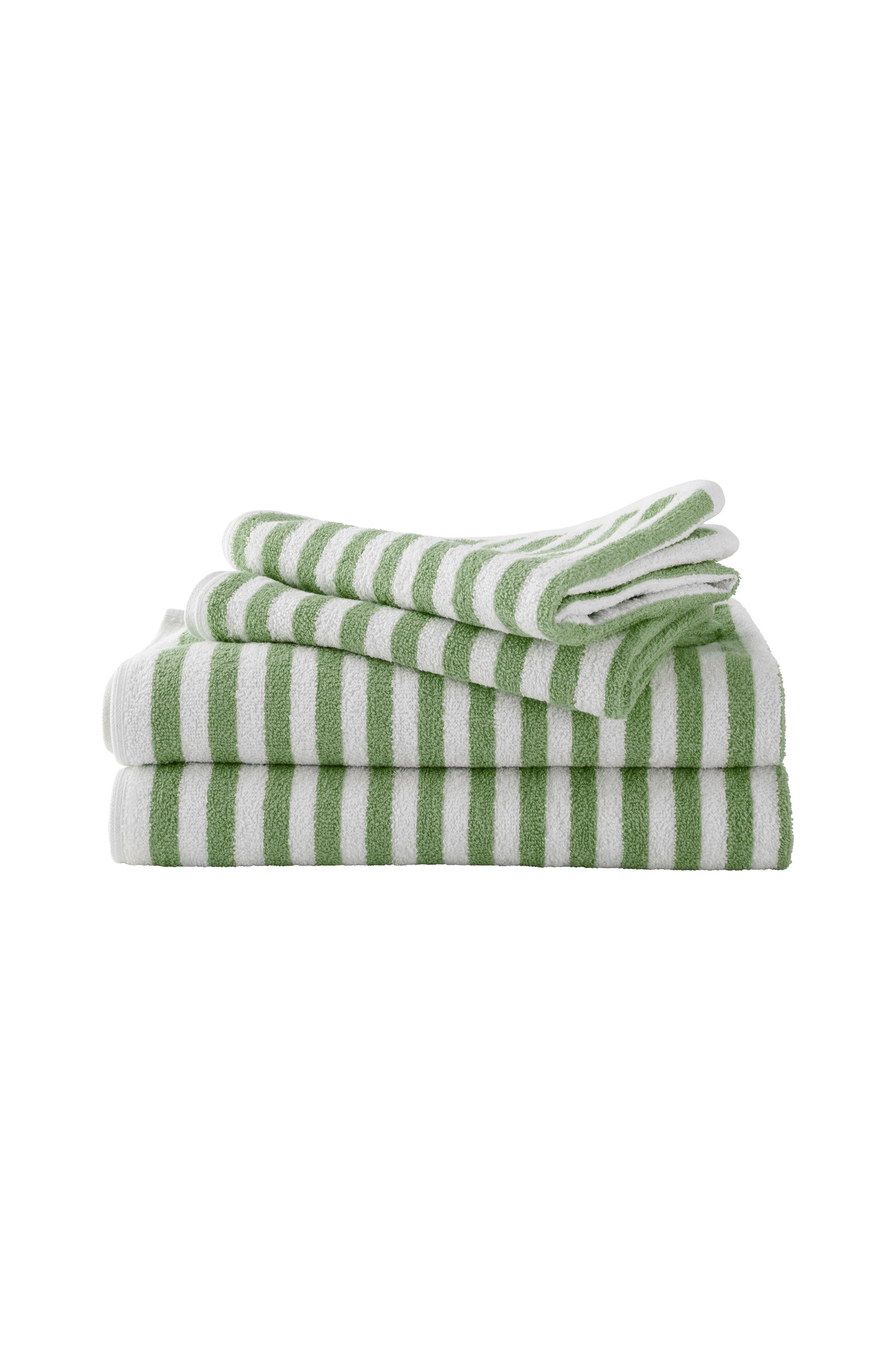 Håndklær i myk og deilig bomullsfrotté med garnfargede striper. Settet inneholder 2 håndklær 50x70 cm og 2 badehåndklær 70x140 cm.