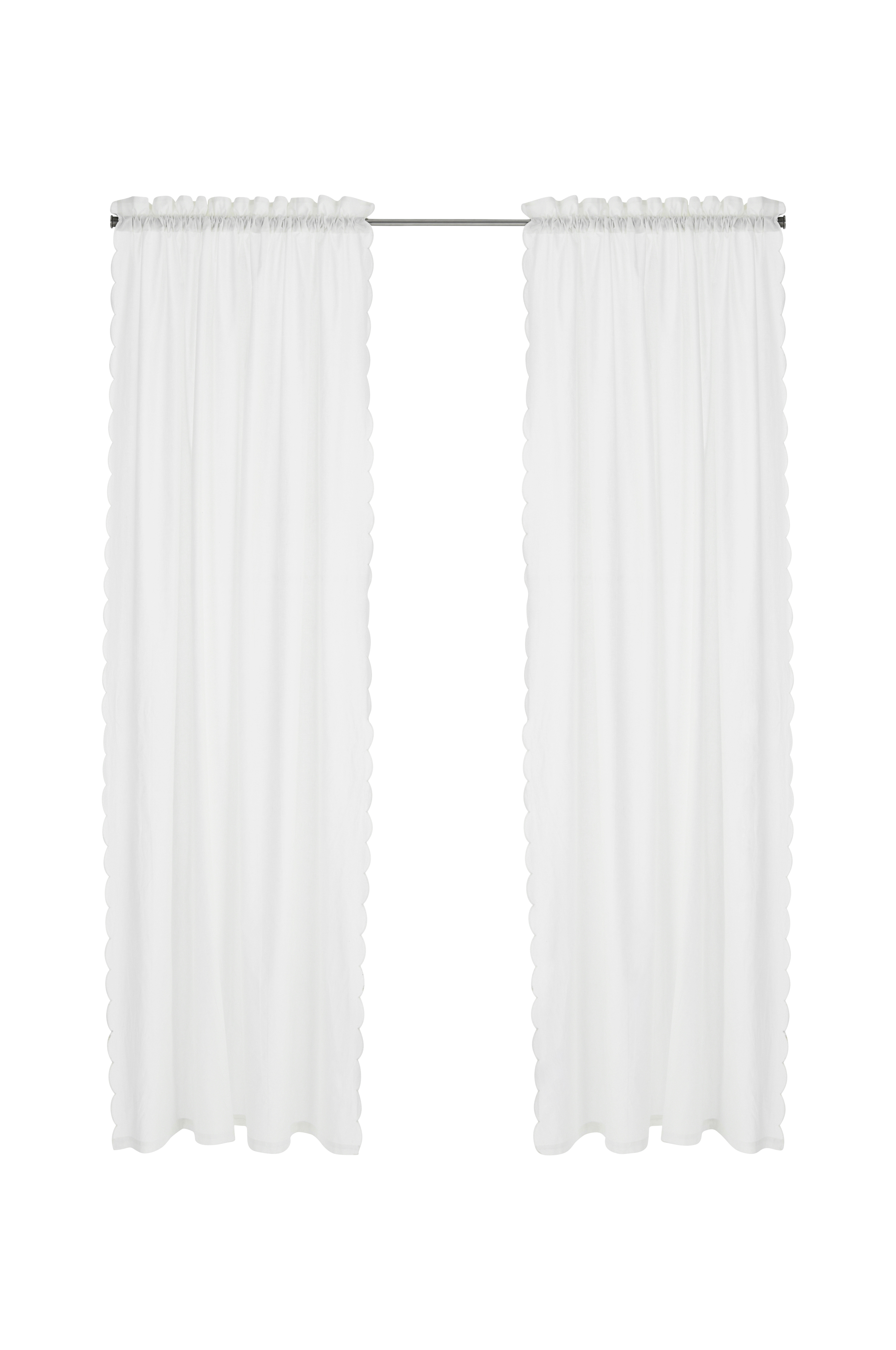 To gardinlengder med kanal / løpegang i bomull. Bølgeformede kanter på sidene med overlocksøm. Sydd løpegang øverst.