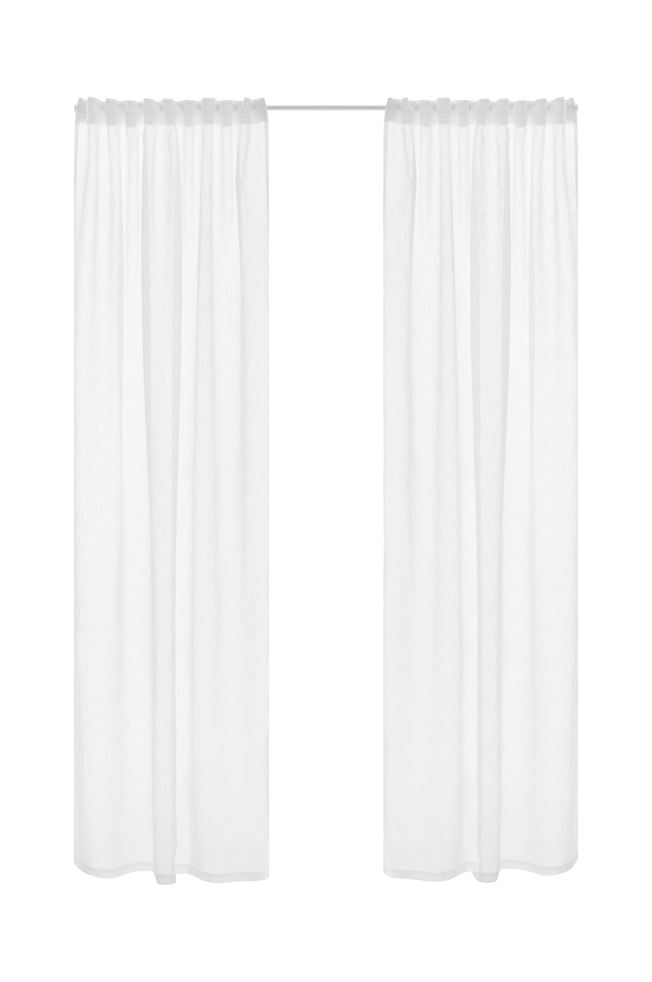 To gardinlengder med multibånd i luftig vevd, gjenvunnet polyester med lett tekstur. Multibåndet gjør at du enten kan henge gardinene rett på en gardinstang gjennom hempene eller bruke rynkebåndskroker, nålkroker eller fingerkroker. Snorene i rynkebåndet gjør at du lett kan skape jevne, fine folder. Bredde 135 cm. Tre lengder: 220, 250 og 300 cm.