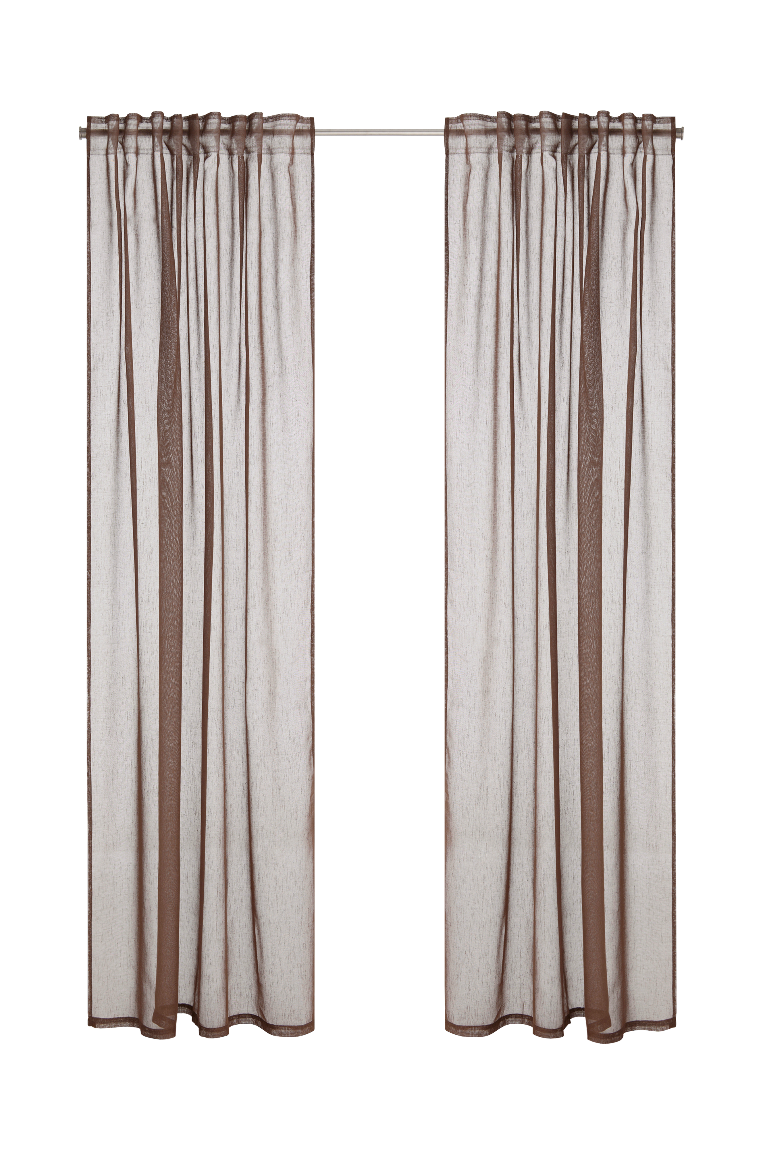To gardinlengder med multibånd i tynn, luftig vevd polyester. Multibåndet gjør at du enten kan henge gardinene rett på en gardinstang gjennom de skjulte hempene eller bruke ringer og nålkroker (ikke fingerkroker). Snoren i rynkebåndet gjør at du lett kan skape jevne, fine folder. Bredde 140 cm. Gardiner finnes i tre lengder: 220, 250 og 300 cm.