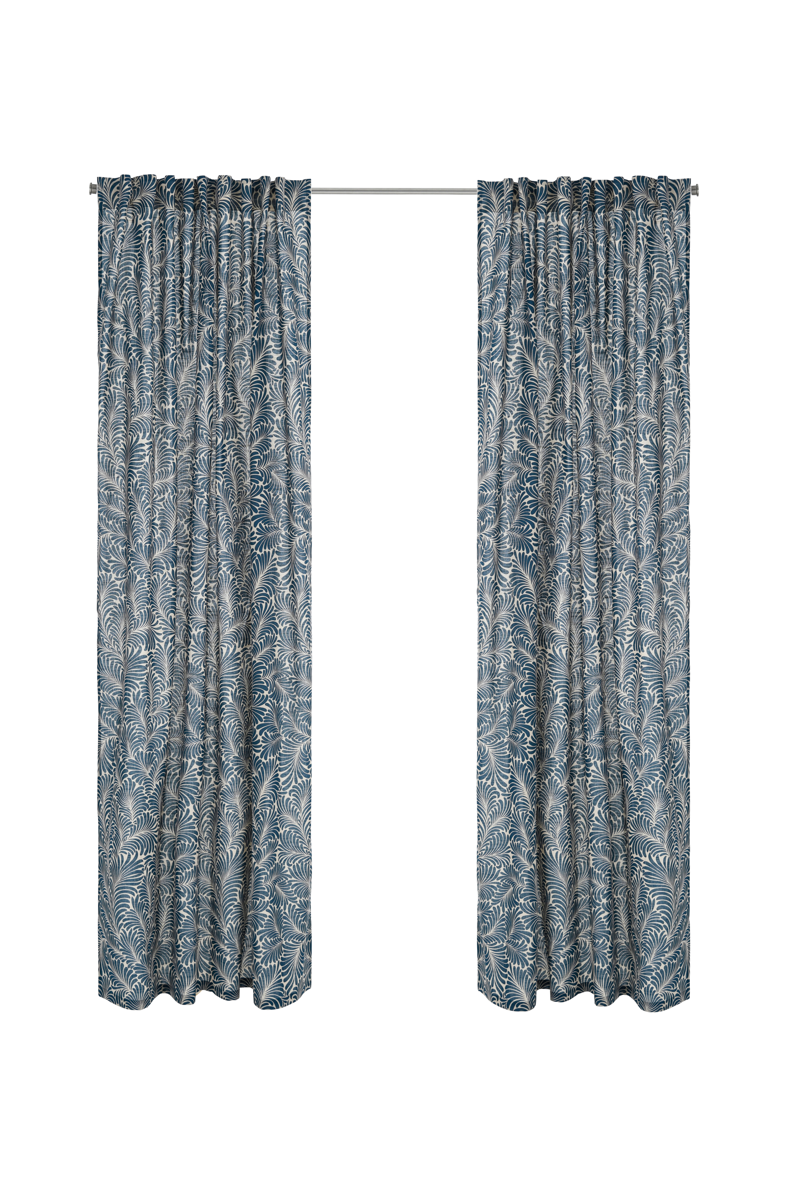To gardinlengder med multibånd i luftig bomullskvalitet med lett tekstur. Trykt mønster. Multibåndet gjør at du enten kan henge gardinene rett på en gardinstang gjennom de skjulte hempene eller bruke ringer, nålkroker eller fingerkroker. Snoren i rynkebåndet gjør at du lett kan skape jevne, fine folder.