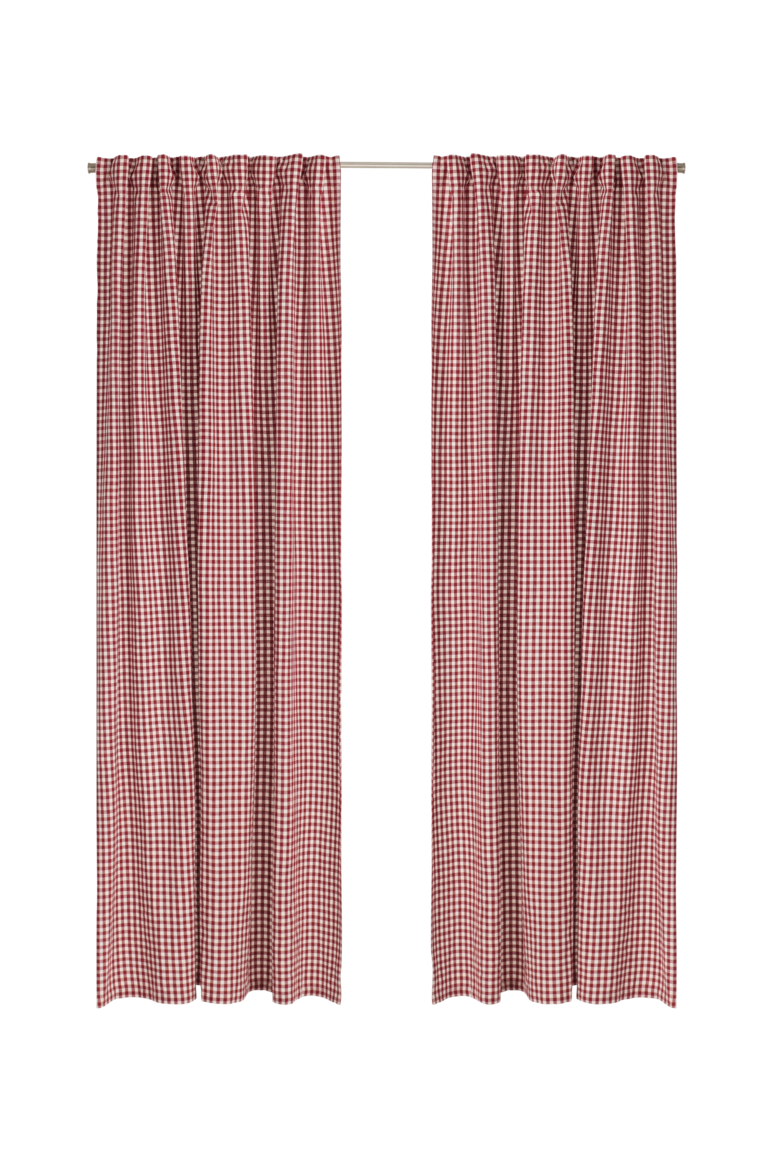 • To Gardin med multibånder i bomull med garnfargede kvadrater