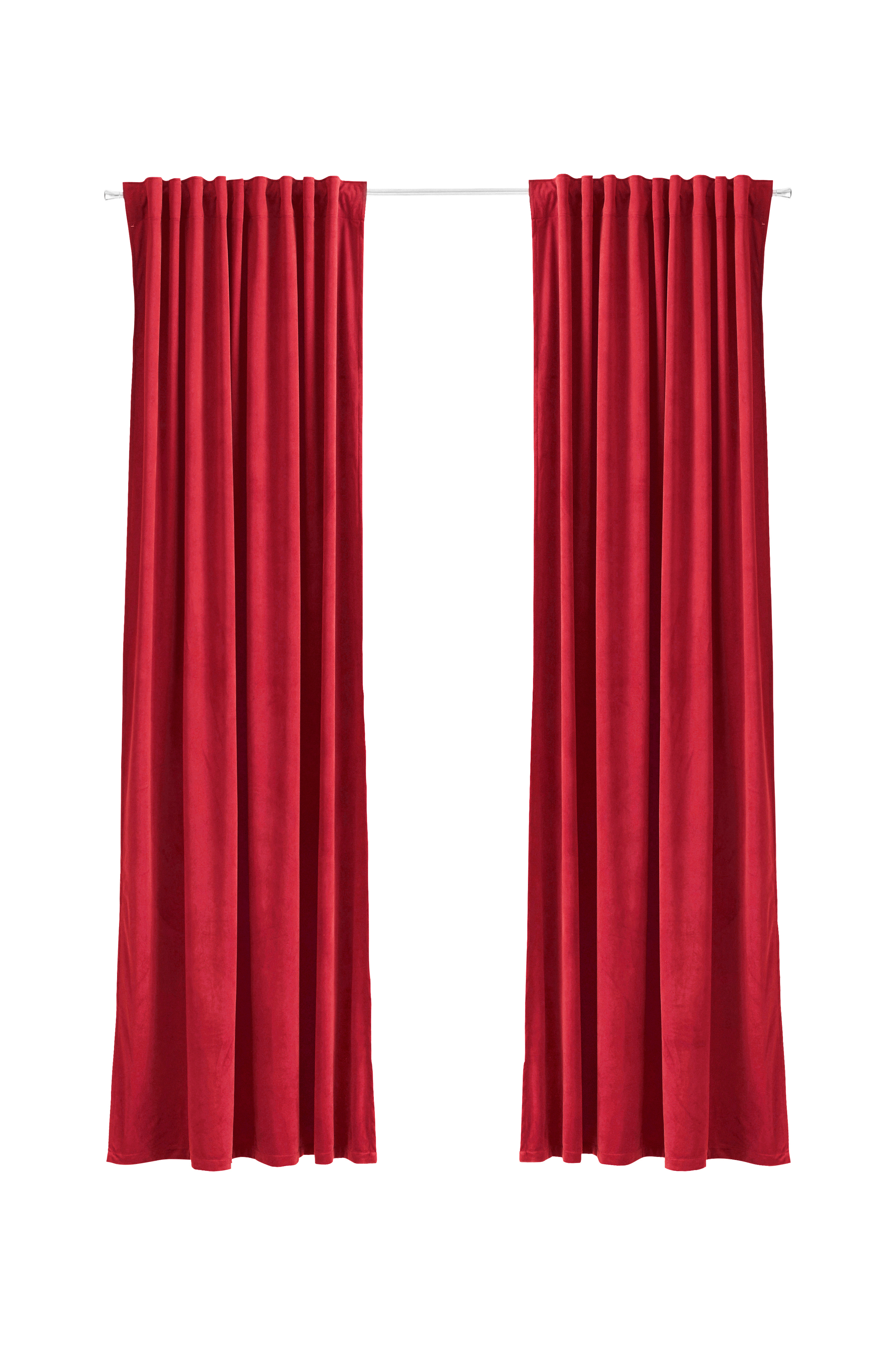 To gardiner i fløyel med multibånd, fin glans og mykt fall. Multibåndet gjør at du enten kan henge gardinene rett på en gardinstang gjennom de skjulte hempene eller bruke ringer, nålkroker eller fingerkroker. Snoren i rynkebåndet gjør at du lett kan skape jevne, fine folder. Bredde 140 cm. Tre lengder: 220, 250 og 300 cm.