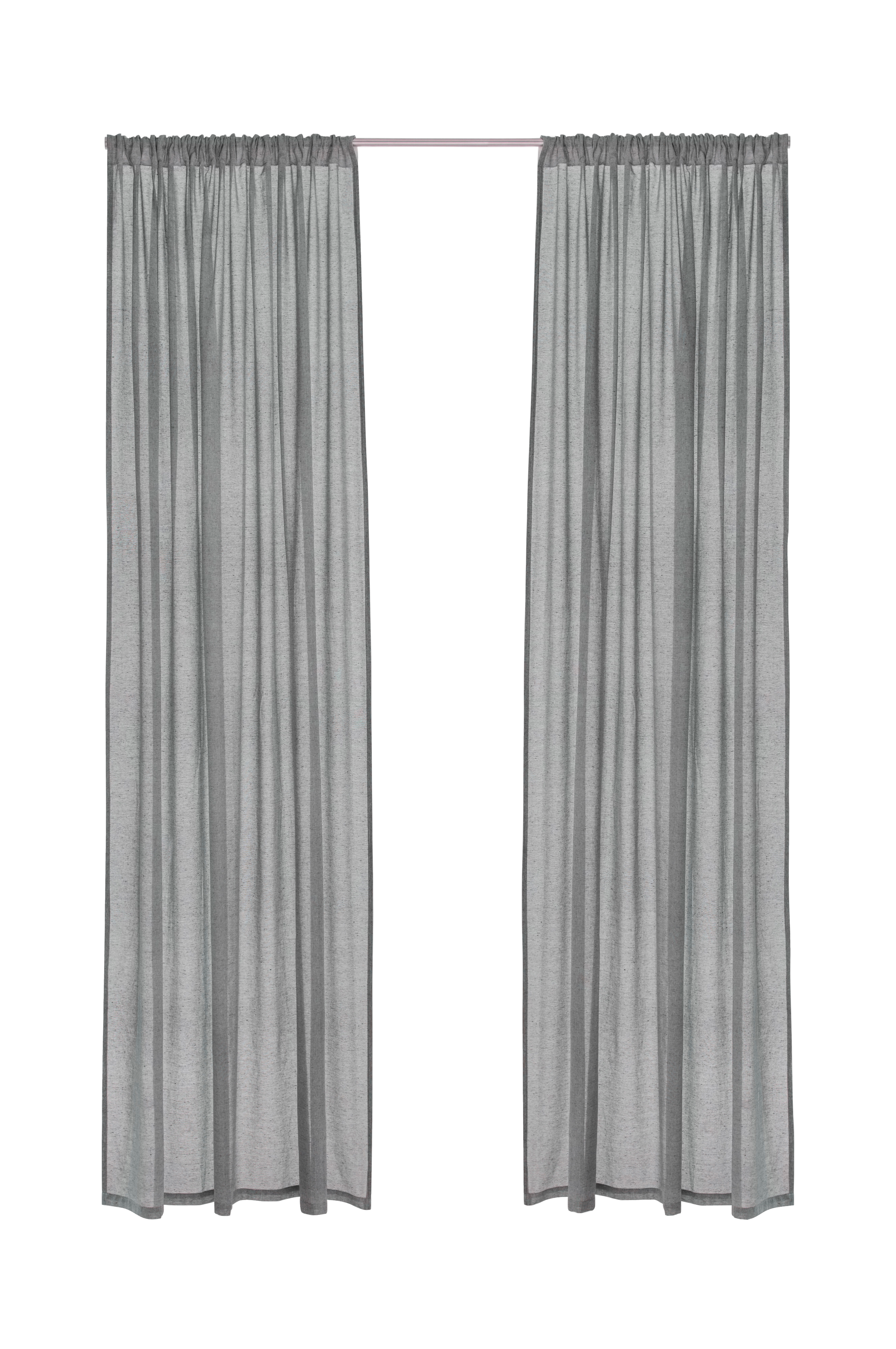 To lengder med flere bånd i en sparsomt vevd kvalitet med melert effekt, laget av resirkulert bomull. Multibåndene gjør at du enten kan henge gardinene direkte på en gardinstang eller bruke ringer og nålekroker (ikke fingerkroker). Snorene i foldene gjør det enkelt å lage jevne, fine plisseringer. Bredde 145 cm. Tilgjengelig i flere forskjellige lengder.