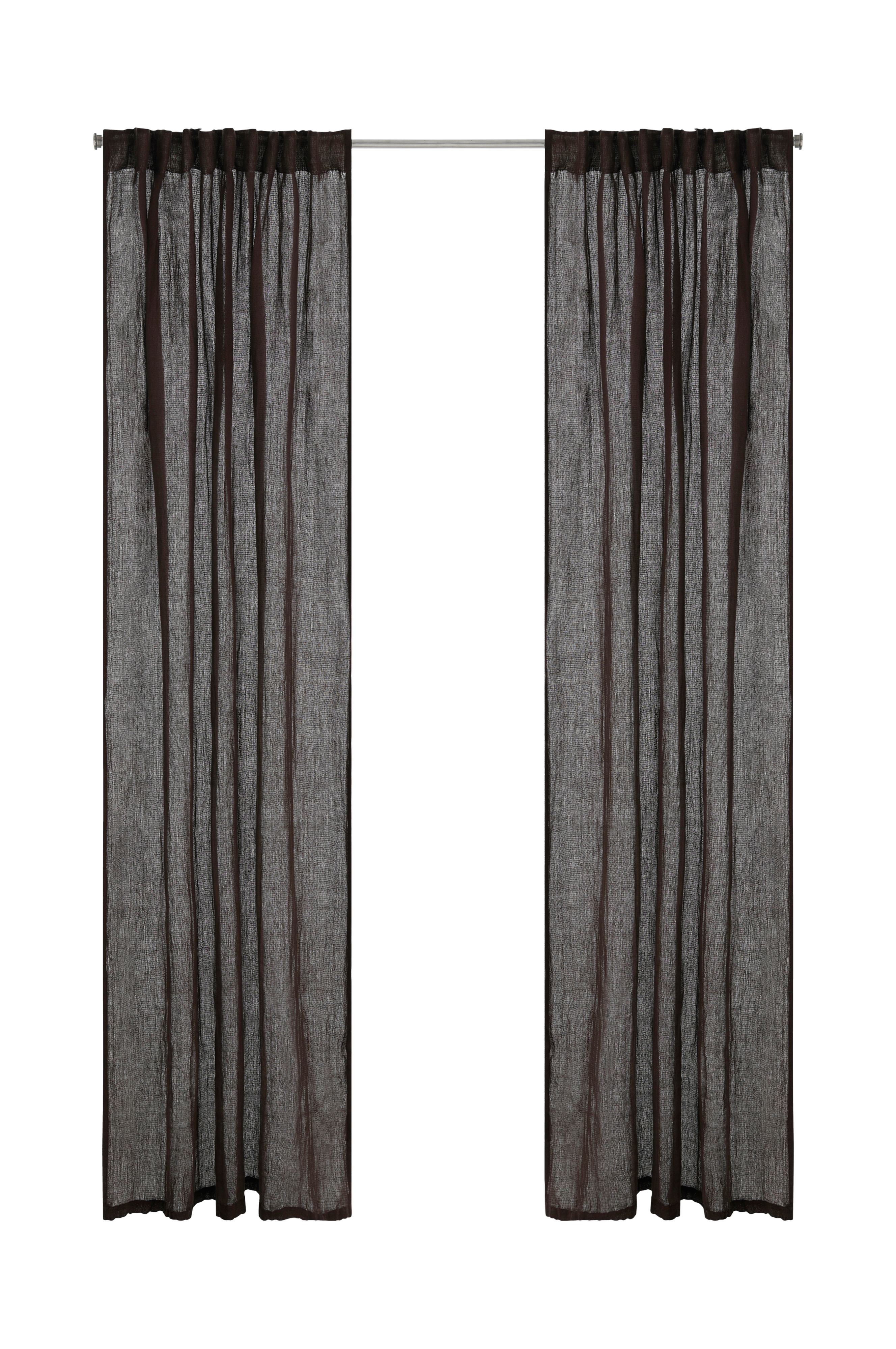 To gardiner med multibånd i en luftig vevd blanding av bomull og lin. Myk kvalitet med tekstur. Multibåndet gjør at du enten kan henge gardinene rett på en gardinstang gjennom de skjulte hempene eller bruke ringer, nålkroker eller fingerkroker. Snoren i rynkebåndet gjør at du lett kan skape jevne, fine folder. Bredde 145 cm. Gardinene finnes i tre lengder: 220, 250 og 300 cm.