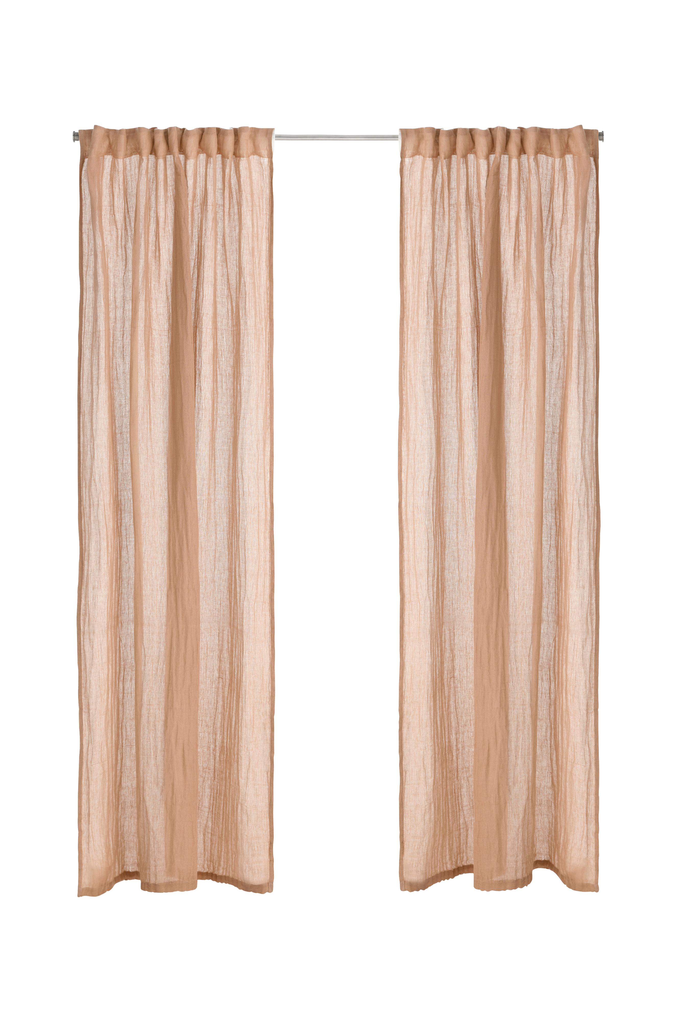 To gardiner med multibånd i en luftig vevd blanding av bomull og lin. Myk kvalitet med tekstur. Multibåndet gjør at du enten kan henge gardinene rett på en gardinstang gjennom de skjulte hempene eller bruke ringer, nålkroker eller fingerkroker. Snoren i rynkebåndet gjør at du lett kan skape jevne, fine folder. Bredde 145 cm. Gardinene finnes i tre lengder: 220, 250 og 300 cm.