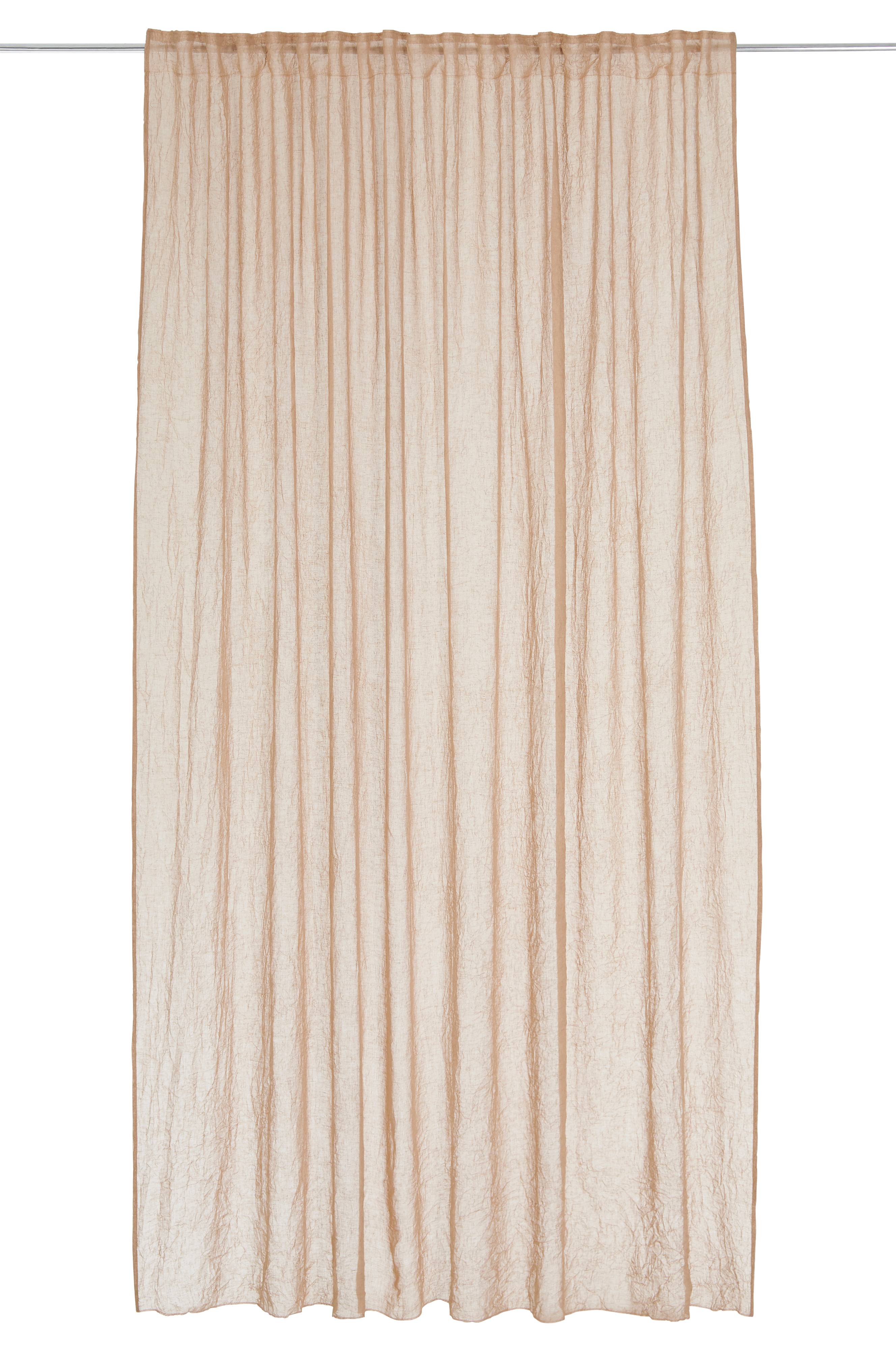 Gardin med multibånd i luftig vevd, tynn og lett krinklet linvoile. Multibåndet gjør at du enten kan henge gardinene rett på en gardinstang gjennom de skjulte hempene eller bruke ringer og nålkroker (ikke fingerkroker). Snor i rynkebåndet gjør at du lett kan skape jevne, fine folder. Overlock i nederkanten. Bredde 260 cm. Lengde 300 cm. Selges enkeltvis.
