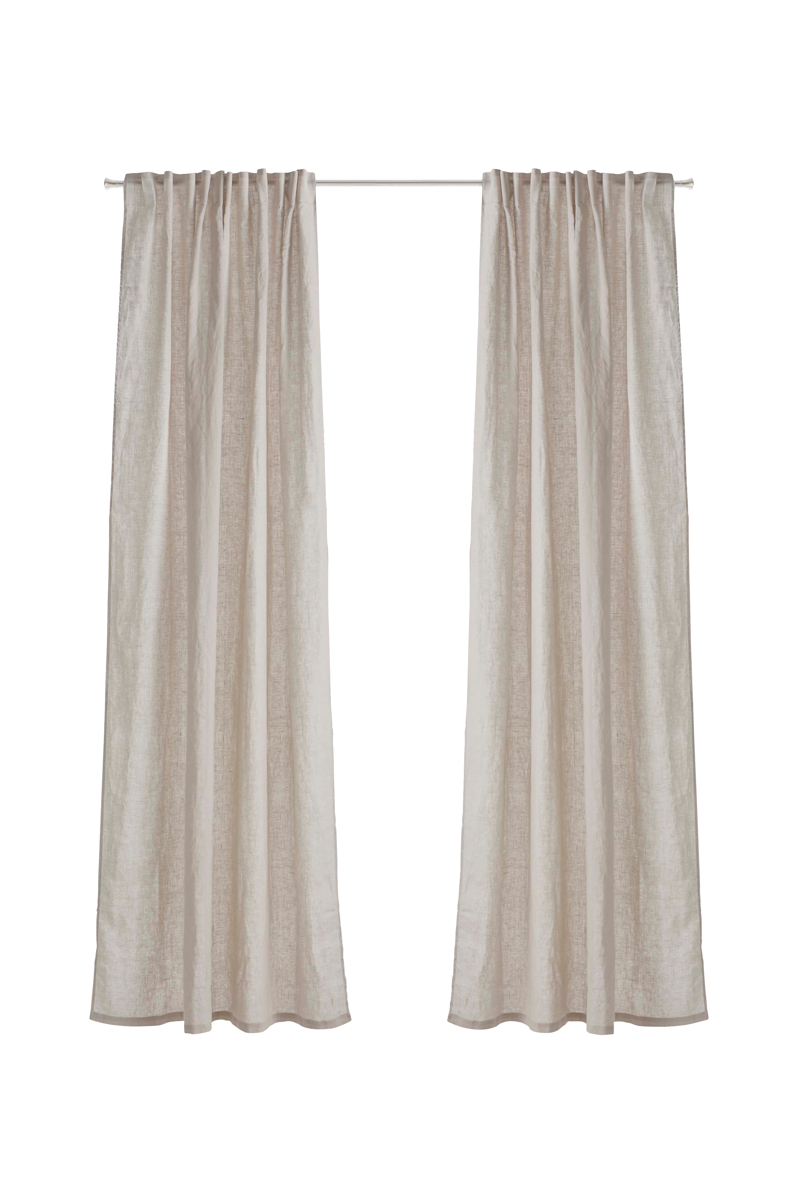 Gardin med multibånd som gjør at du enten kan henge gardinene rett på en gardinstangen gjennom de skjulte hempene eller bruke ringer og nålkroker (ikke fingerkroker). Av vasket lin med vakker tekstur. Snoren i rynkebåndet gjør at du lett kan skape jevne, fine folder. Tørketromle på lav temperatur for å beholde en myk følelse og vasket look. Bredde 145 cm. Tre lengder: 220, 250 og 300 cm.
