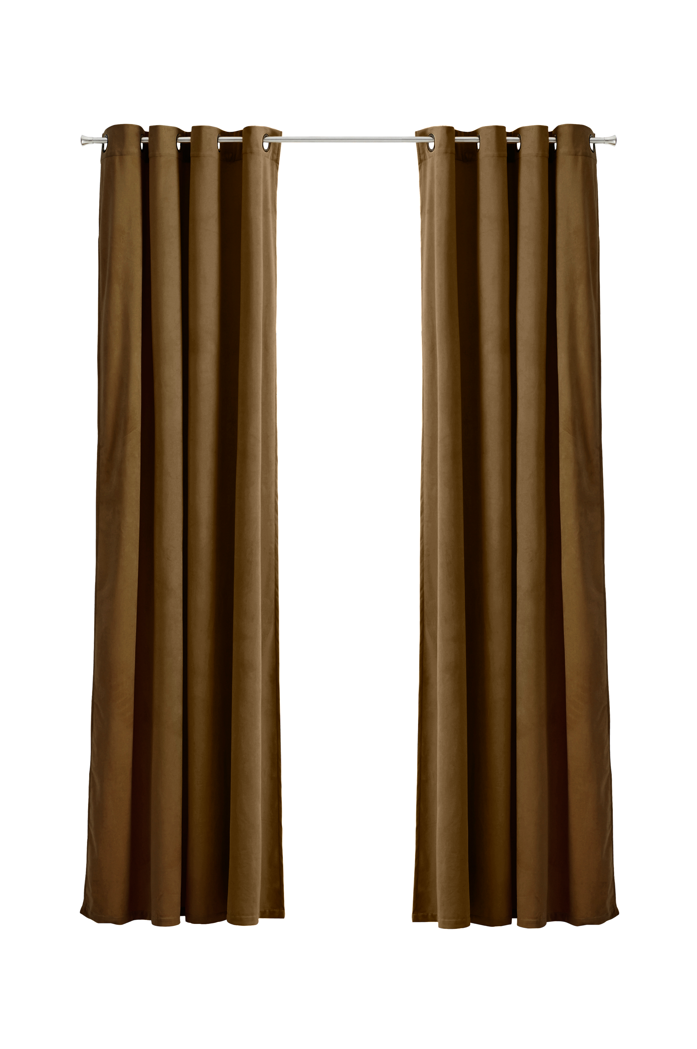 Fløyelsgardiner med fin glans og mykt fall. Maljer av antikkmessing metall. Bredde 140 cm. To lengder: 220 og 250 cm.