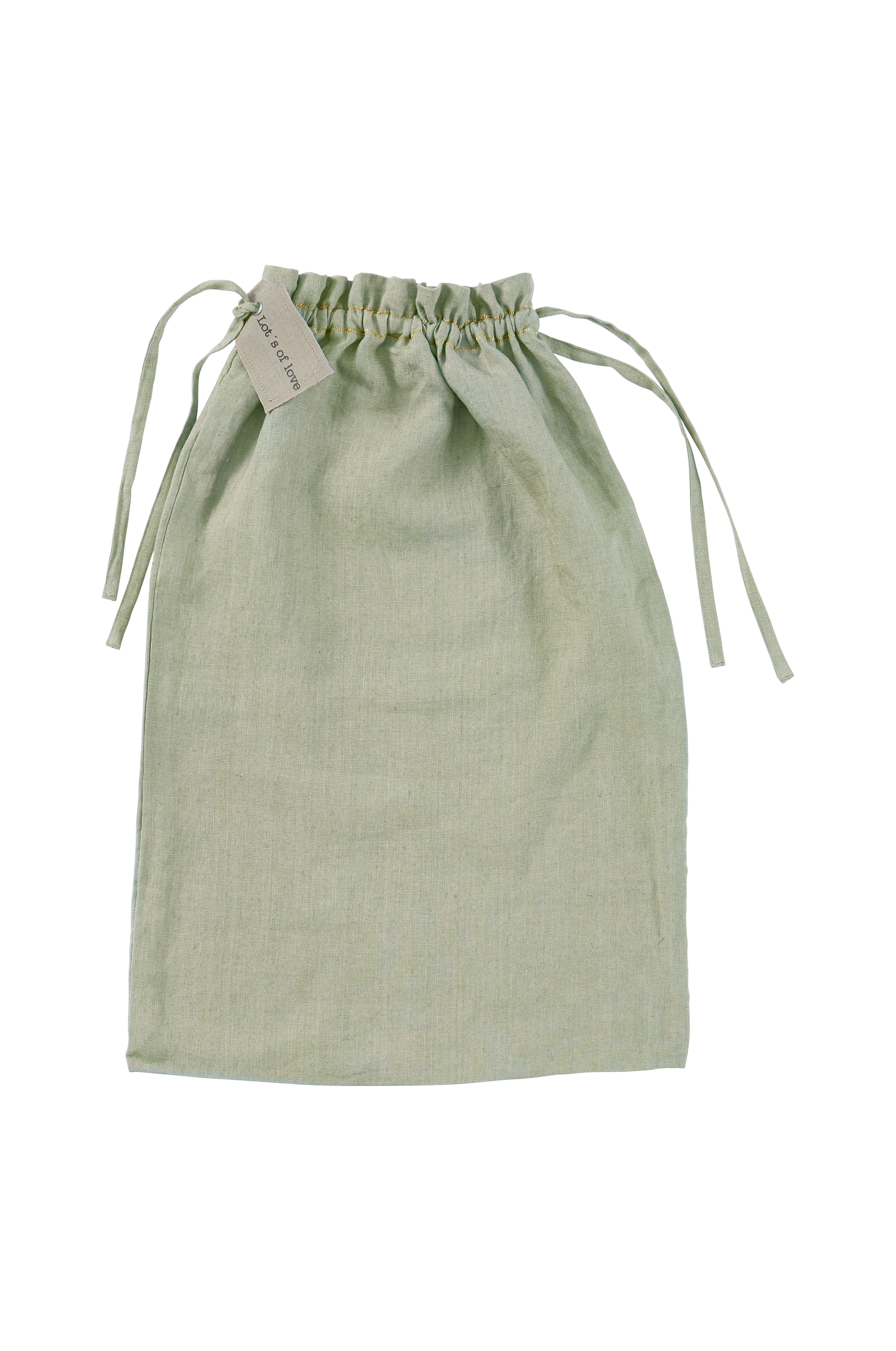 Gavepose Candice i linstoff. Snøring med etikett øverst. Velg mellom str 15x20 cm, 30x40 cm og 40x60 cm.