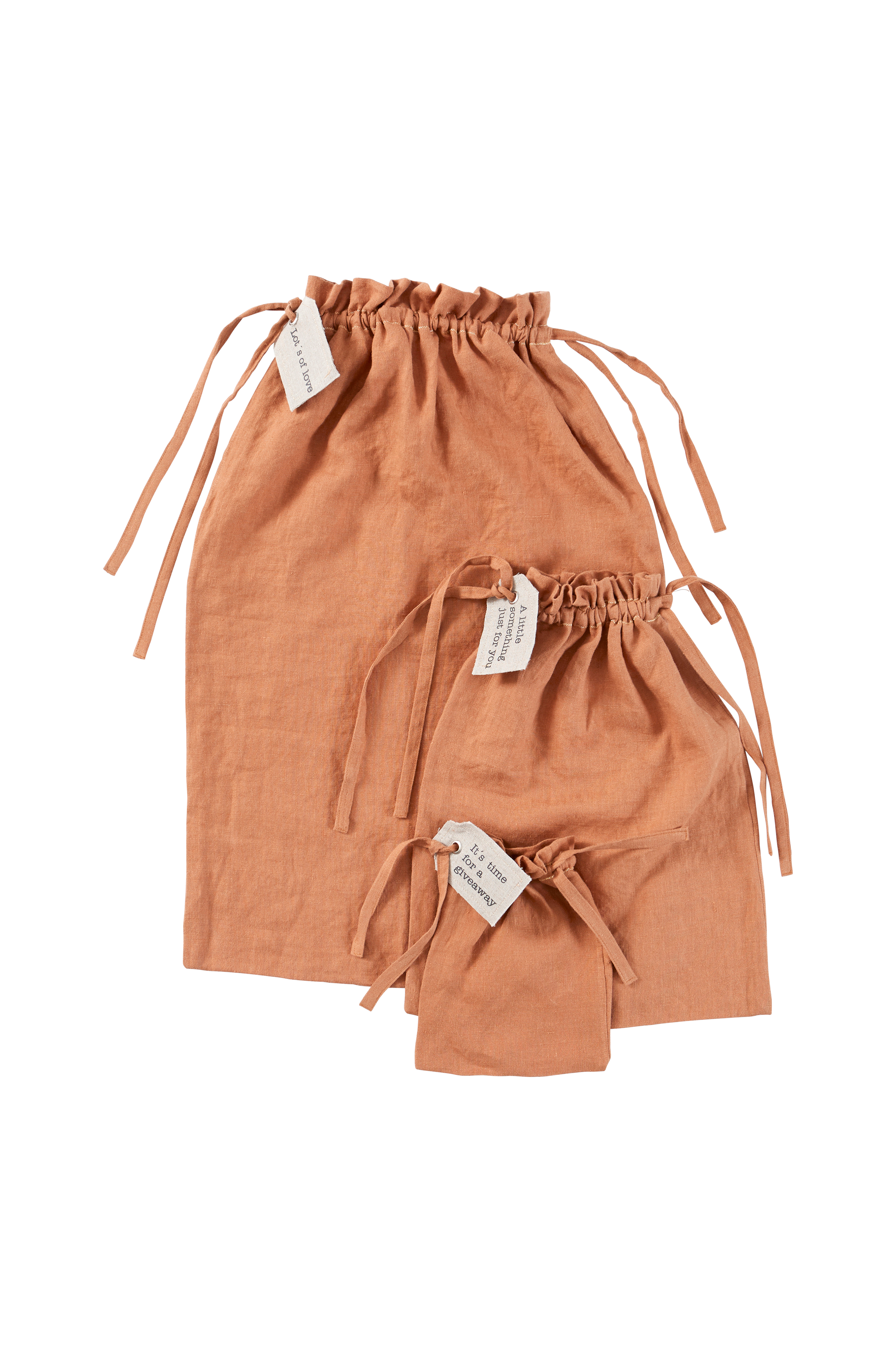 Gavepose Candice i linstoff. Snøring med etikett øverst. Velg mellom str 15x20 cm, 30x40 cm og 40x60 cm.