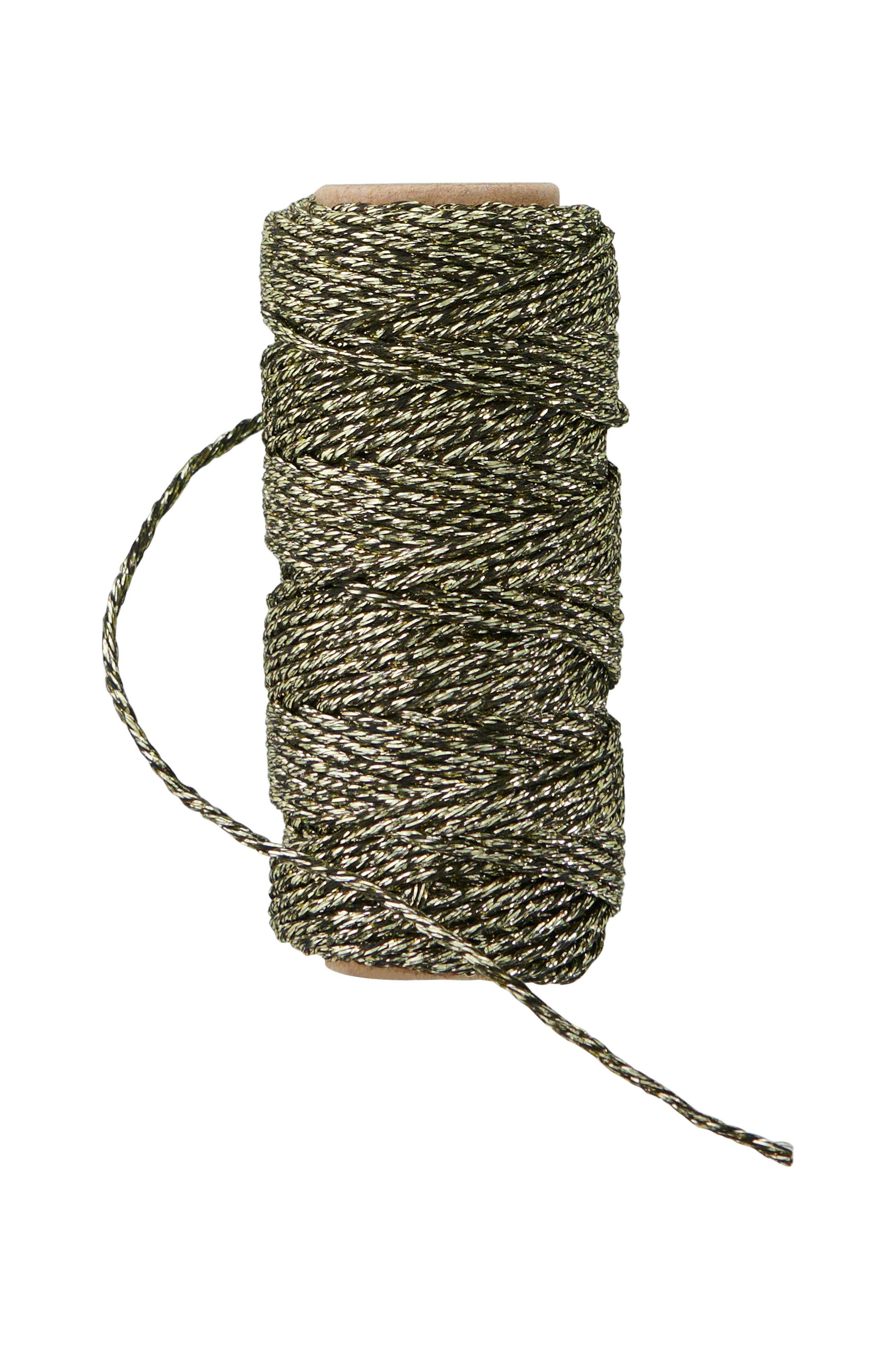Rundt, glitrende snøre av 100% Pet Mylar (polyester). Diameter 1,5 mm, lengde 25 m.
