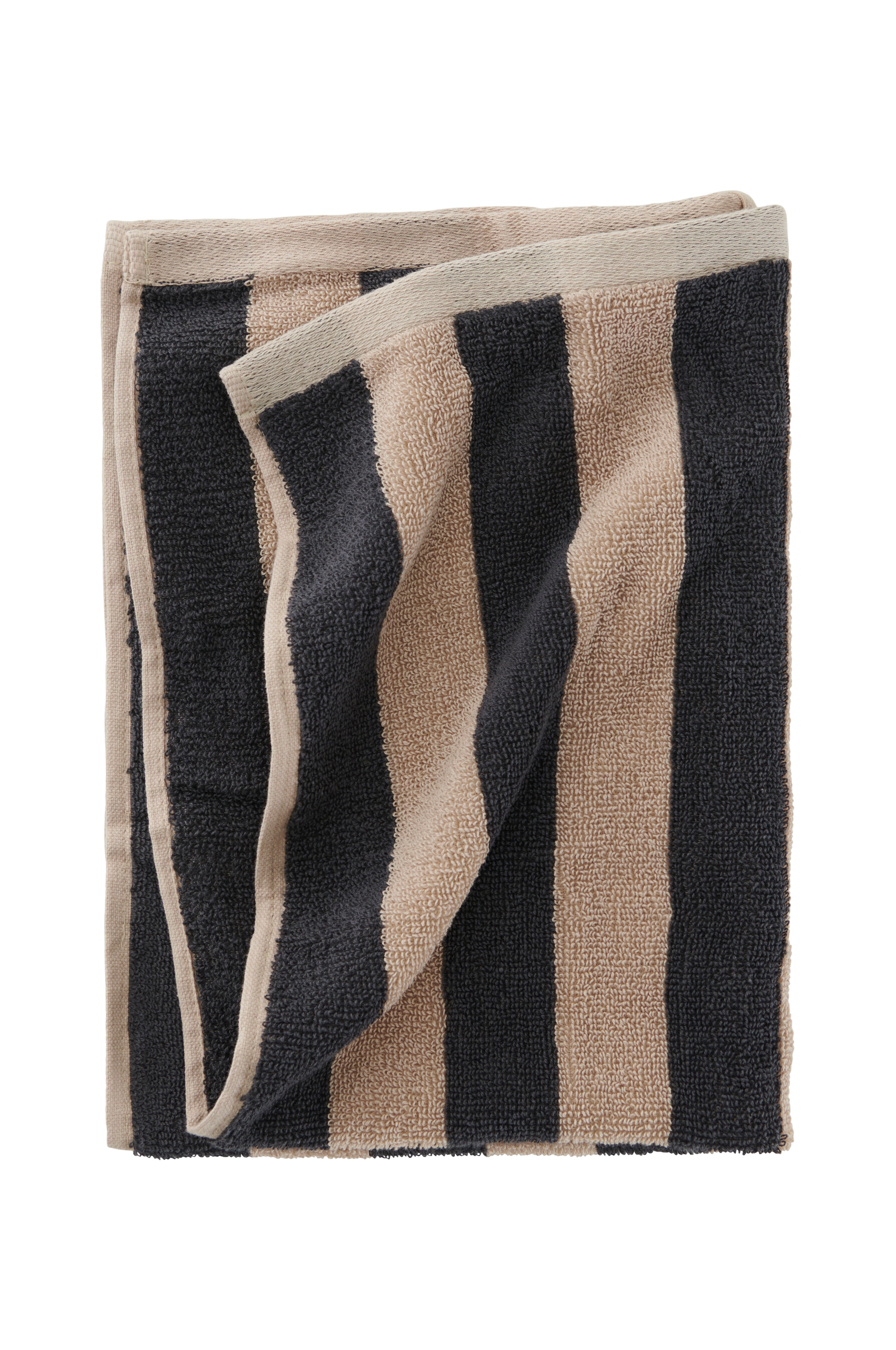 Håndkle i myk og deilig bomullsfrotté med garnfargede striper. Str 50x70 cm.