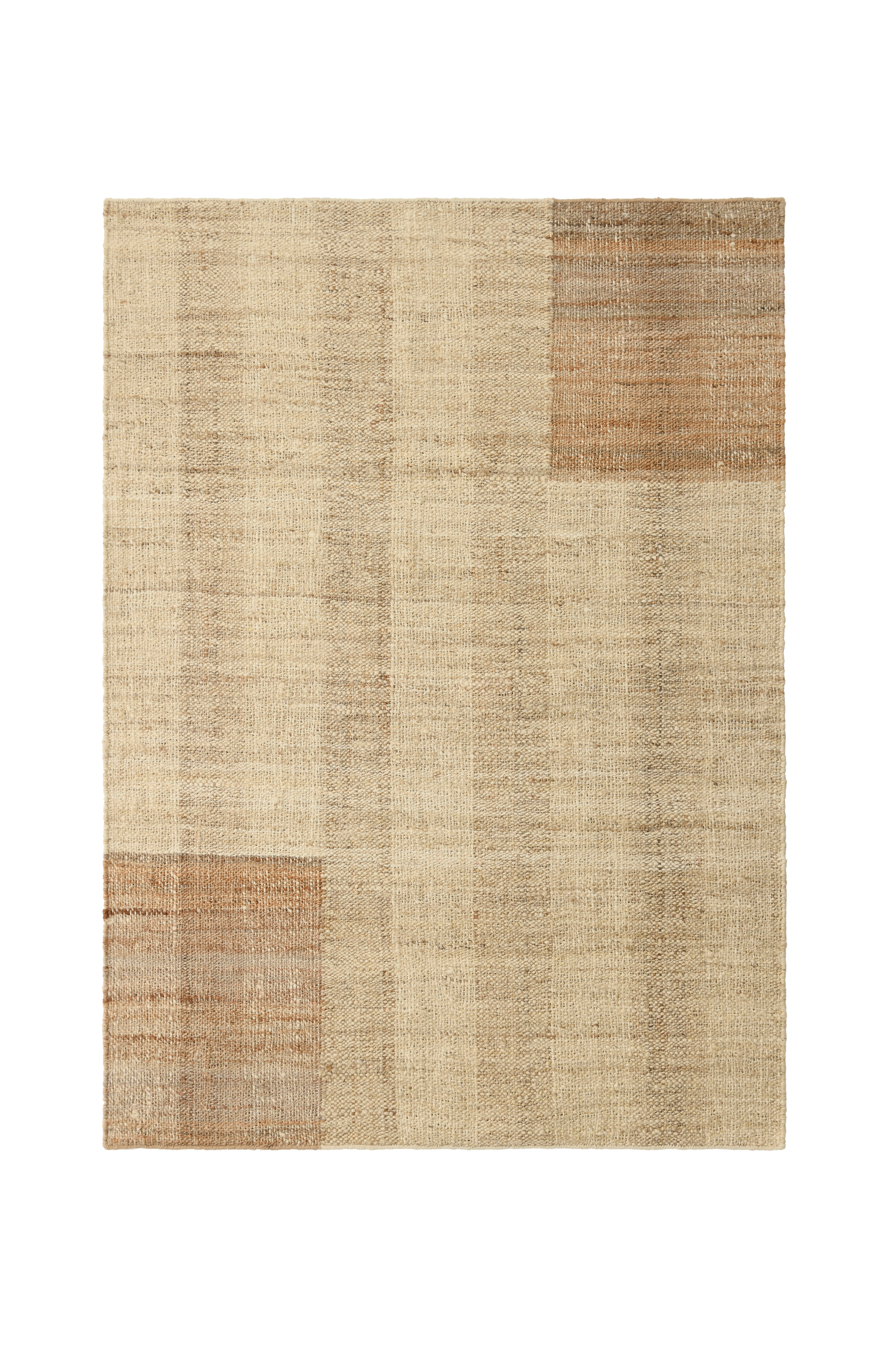 Håndvevd juteteppe i patchworklook. Tykkelse 1 cm.