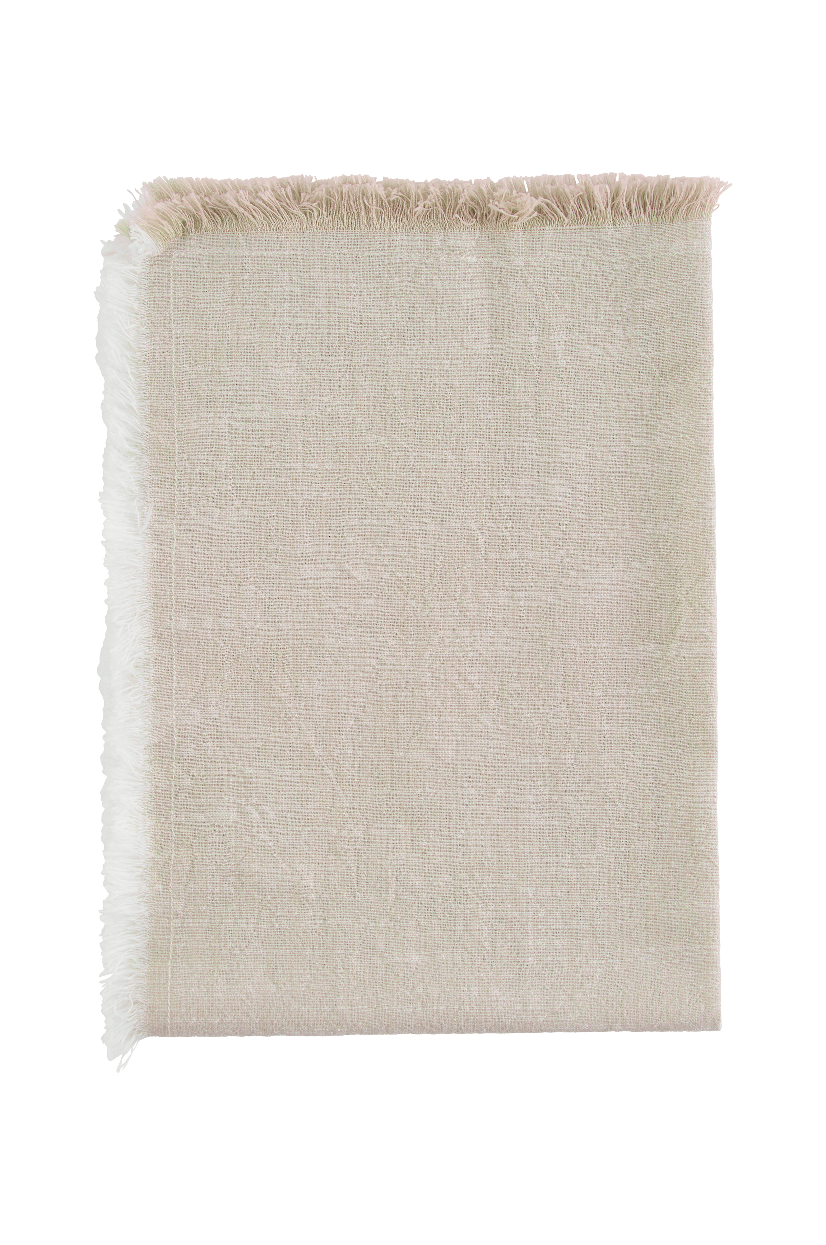 Kjøkkenhåndkle i vevd, økologisk bomull med melert farge og slubbeffekt, noe som betyr at stoffet har en lett tekstur. Frynser på 3 sider.