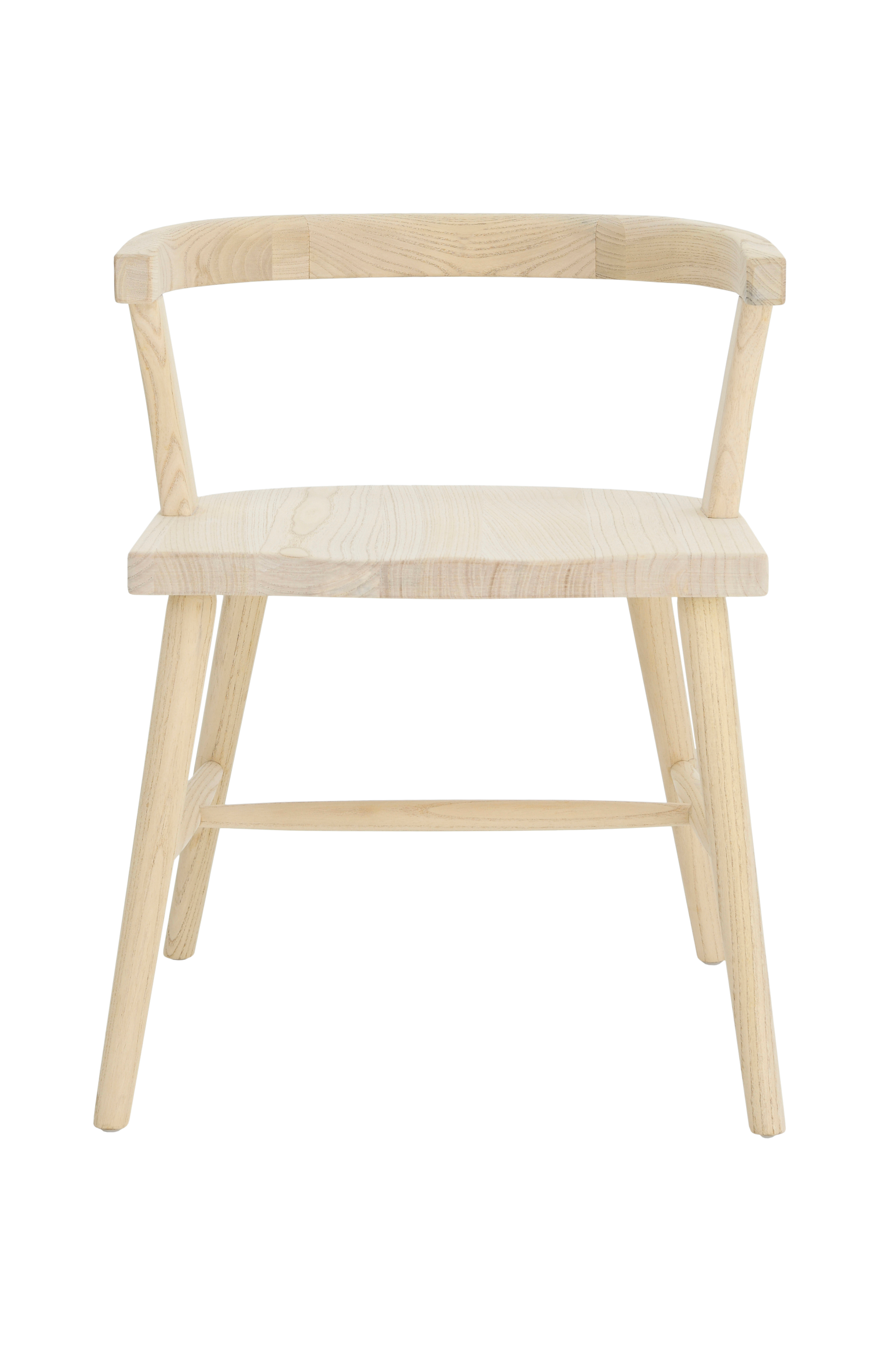 Kjøkkenstol i hvitlasert massiv alm med uregelmessig forkant. Leveres montert.