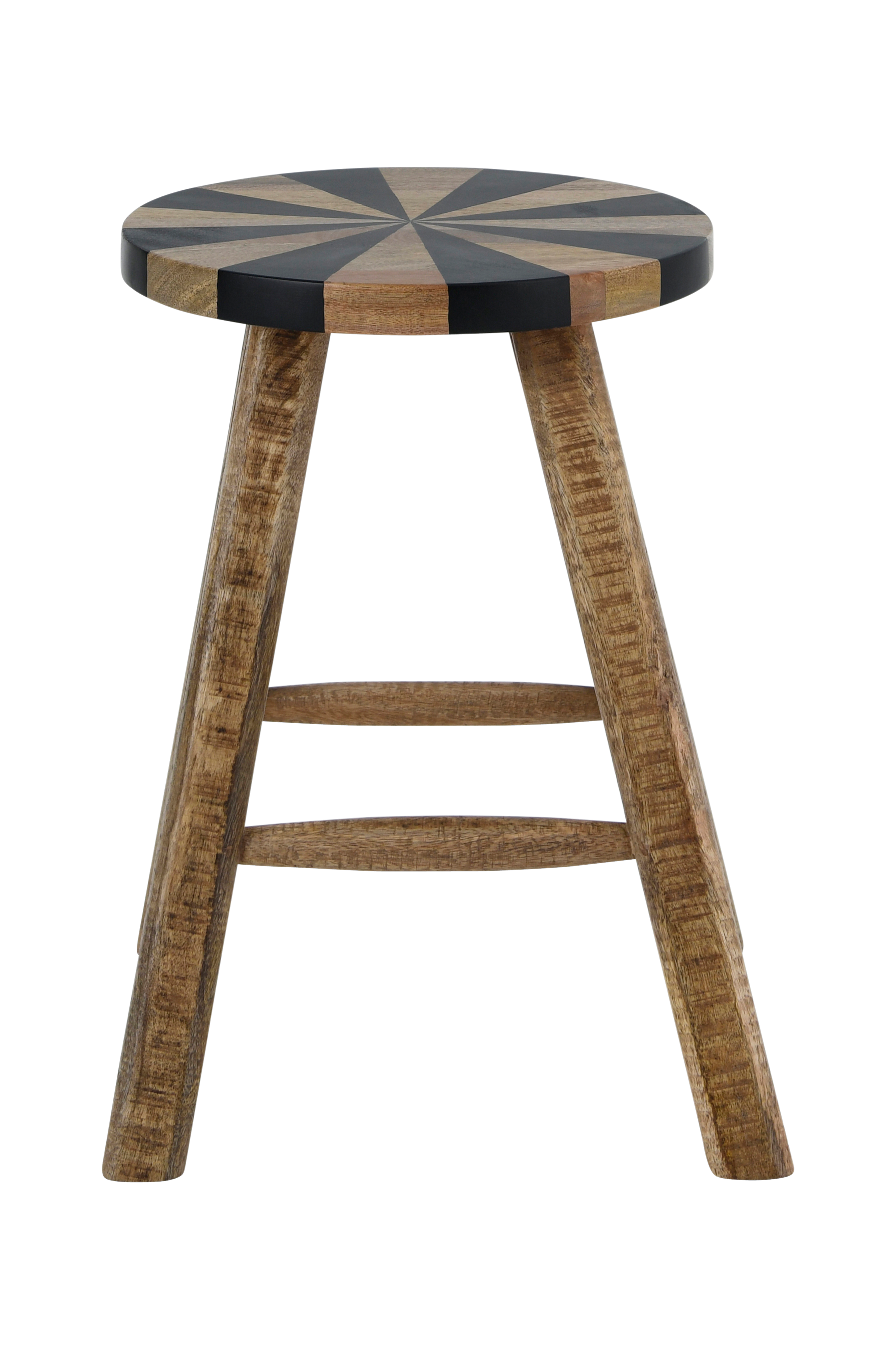 Krakk i mangotre med malt mønster på setet. Setets diameter 32 cm.