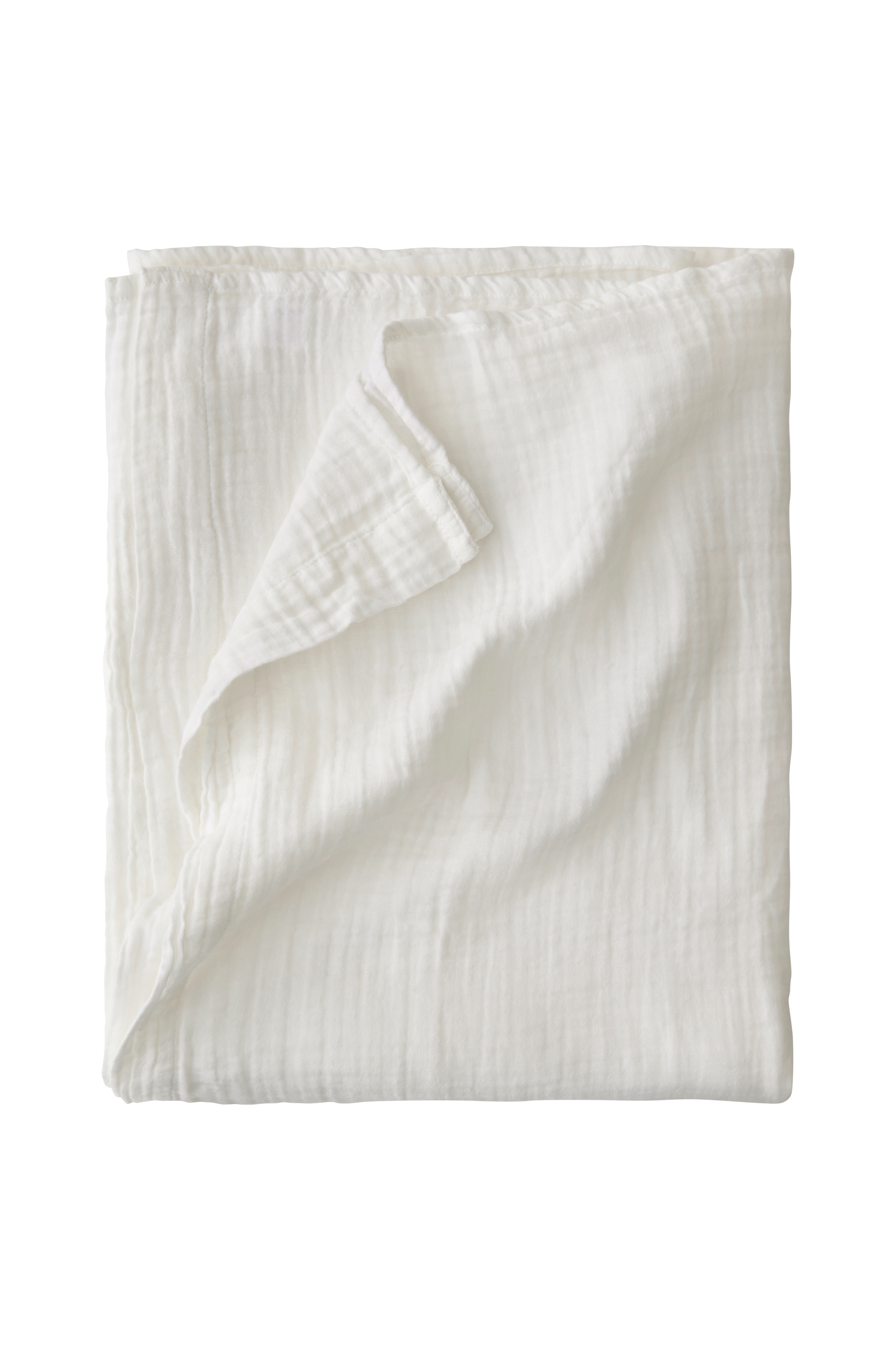 Laken av vasket, økologisk bomullsmusselin i 2 lag. 5 cm søm rundt. Trådtelling: 230 TC. Musselin er et supermykt, luftig og lett teksturert stoff med den velkjente rynkede effekten.