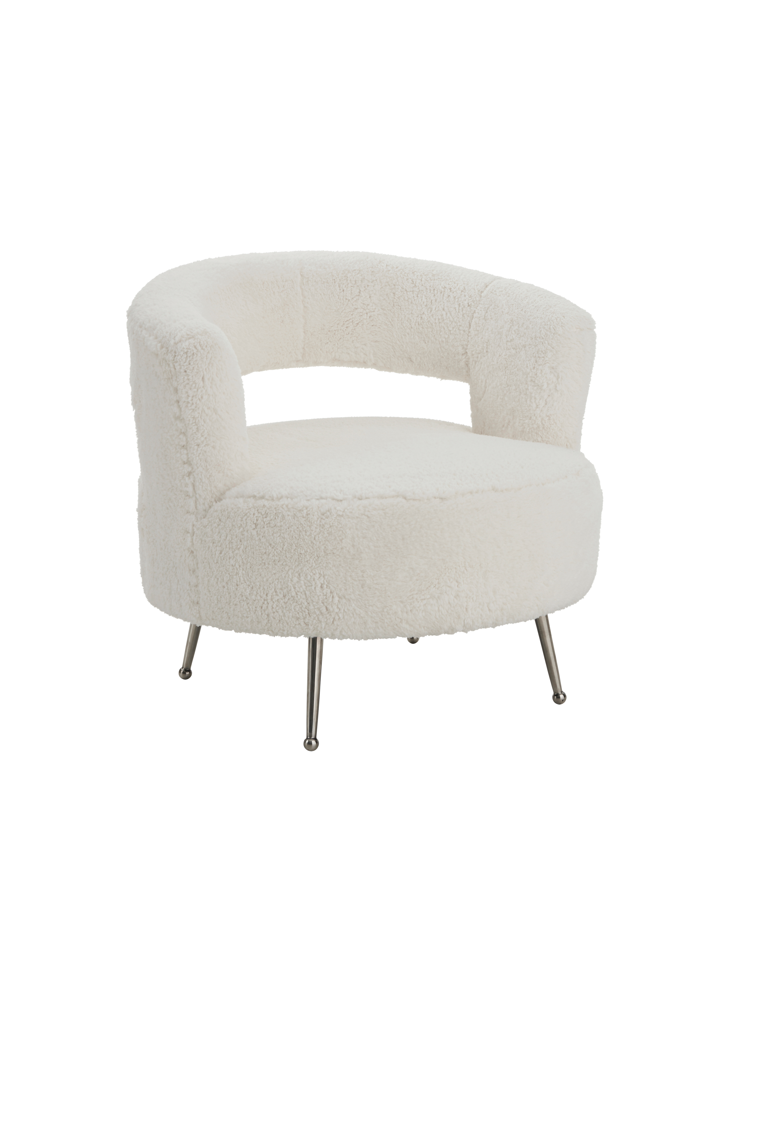Lenestol med trekk av mykt teddystoff av polyester. Mål: Bredde 83 cm, høyde 76 cm, dybde 80 cm. Sittehøyde 42 cm, sittedybde 63 cm og sittebredde 55 cm. Benhøyde 20 cm.