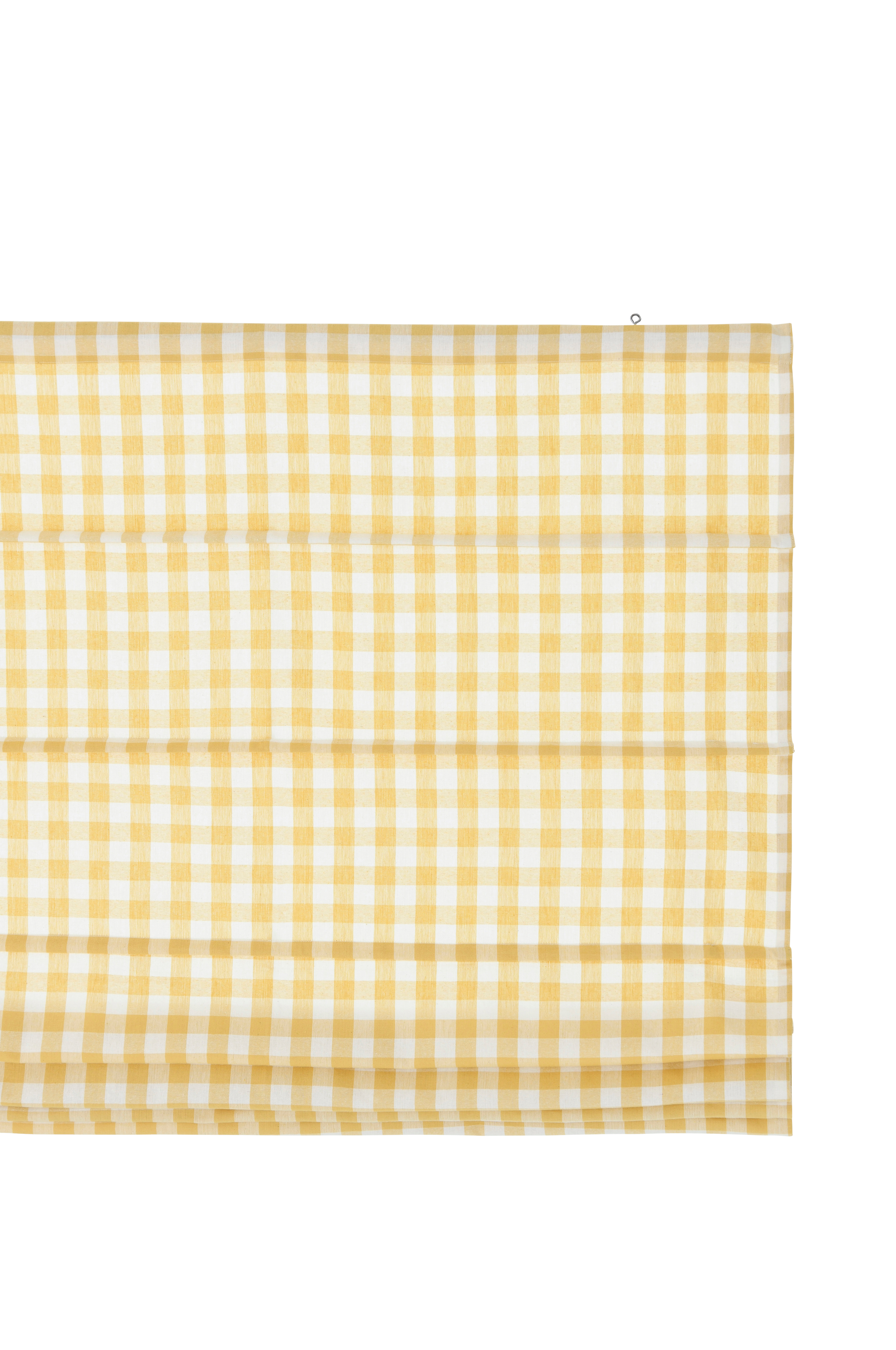 Liftgardin i bomull med garnfargede ruter. Leveres ferdig montert. Stabil konstruksjon med trepinne øverst og snorer som løper gjennom tverrgående pinner. Kroker for oppheng medfølger. Lengde 160 cm. Kommer i flere ulike bredder.