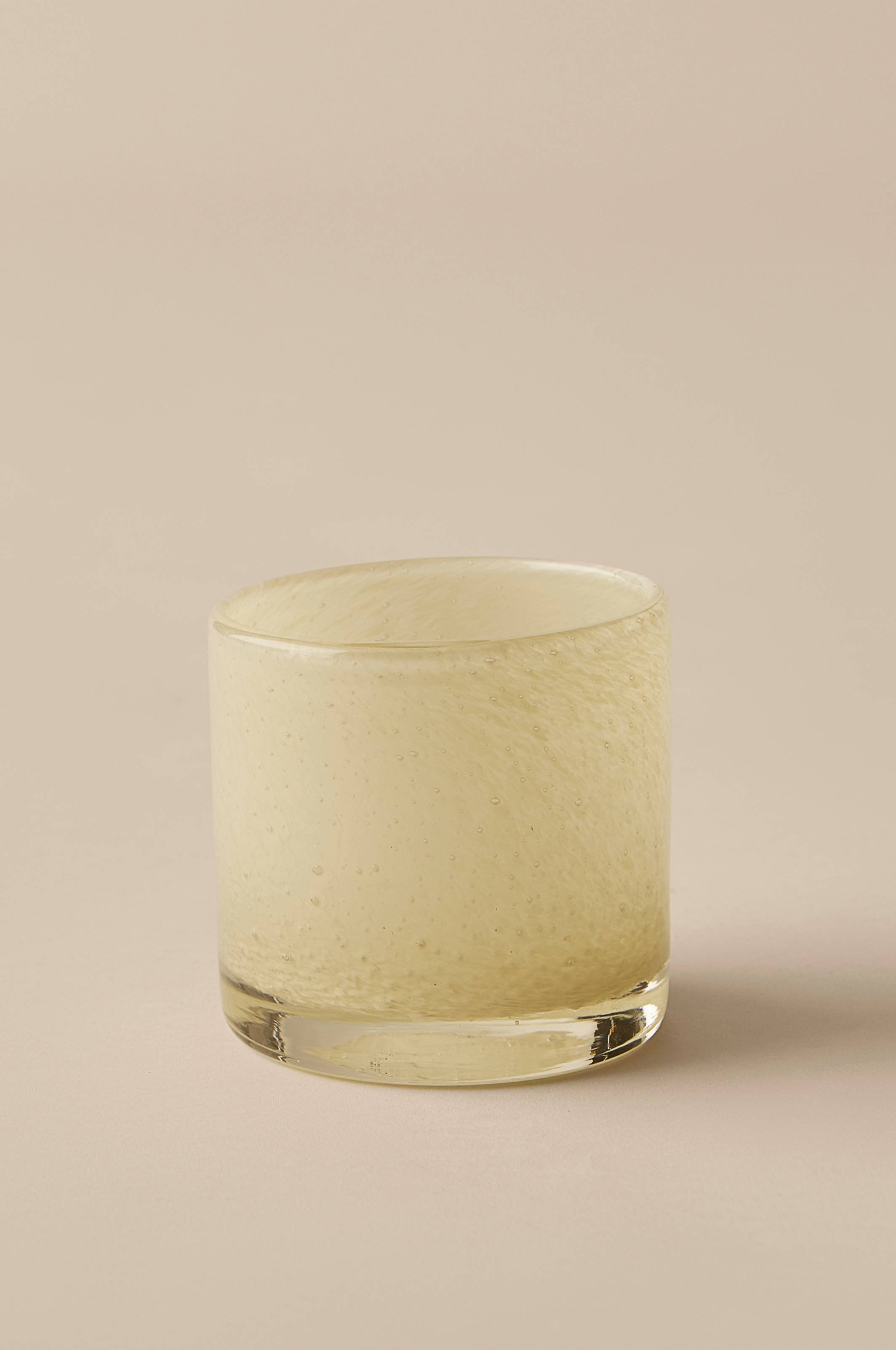 Lyslykt eller liten krukke i glass. Fargen har vakre skiftninger og glasset har bobler i seg som skaper et fint uttrykk og et stemningsfullt skinn. Teknikken gjør at ujevnheter og fargeforskjeller forekommer og hver lyslykt blir unik. Høyde ca. 10 cm, Ø ca. 10 cm. Rengjøres for hånd.