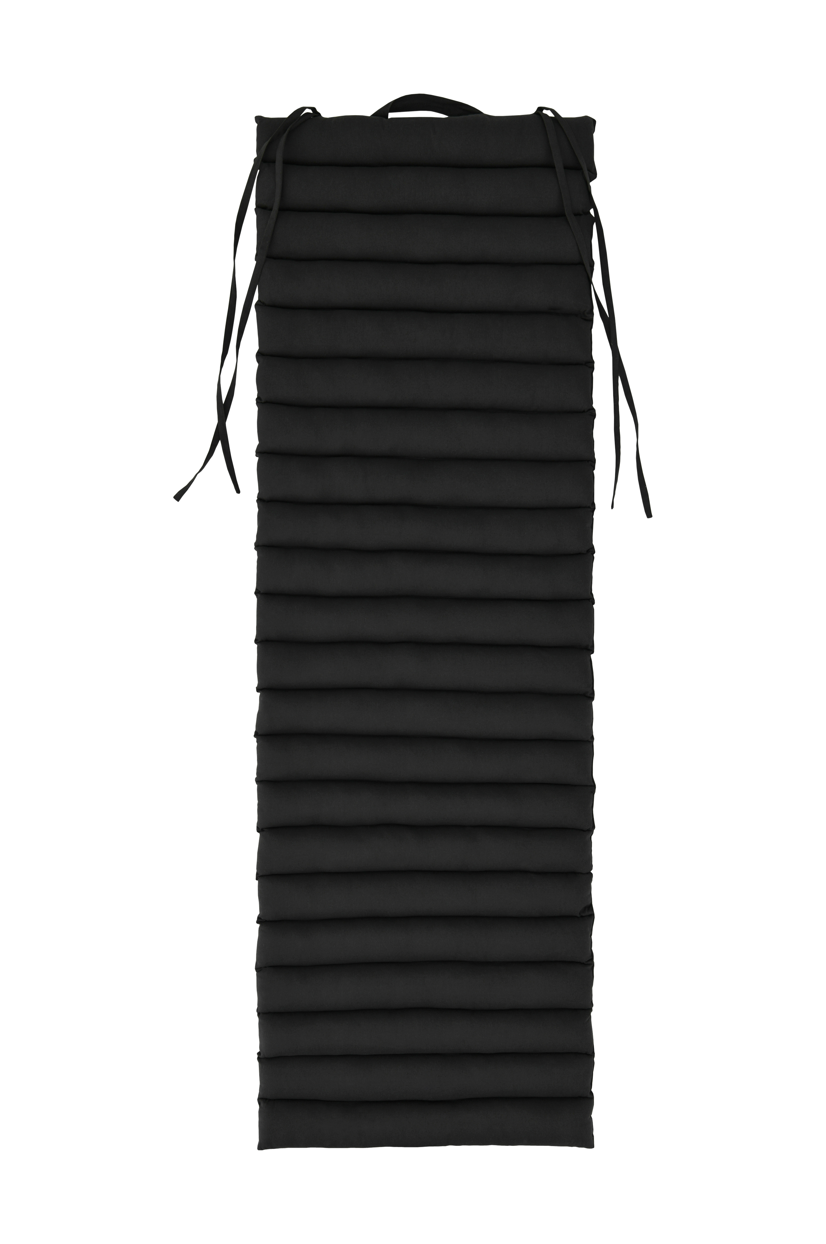 Madrass som kan brukes både som solseng og separat. Ytterstoff i bomull med sydde kanaler. Håndtak på den ene kortsiden. Fyll av gjenvunnet polyester. Lett å bære med seg. Leveres sammenrullet med knytebånd. Str 60x190 cm. Tykkelse 3 cm.
