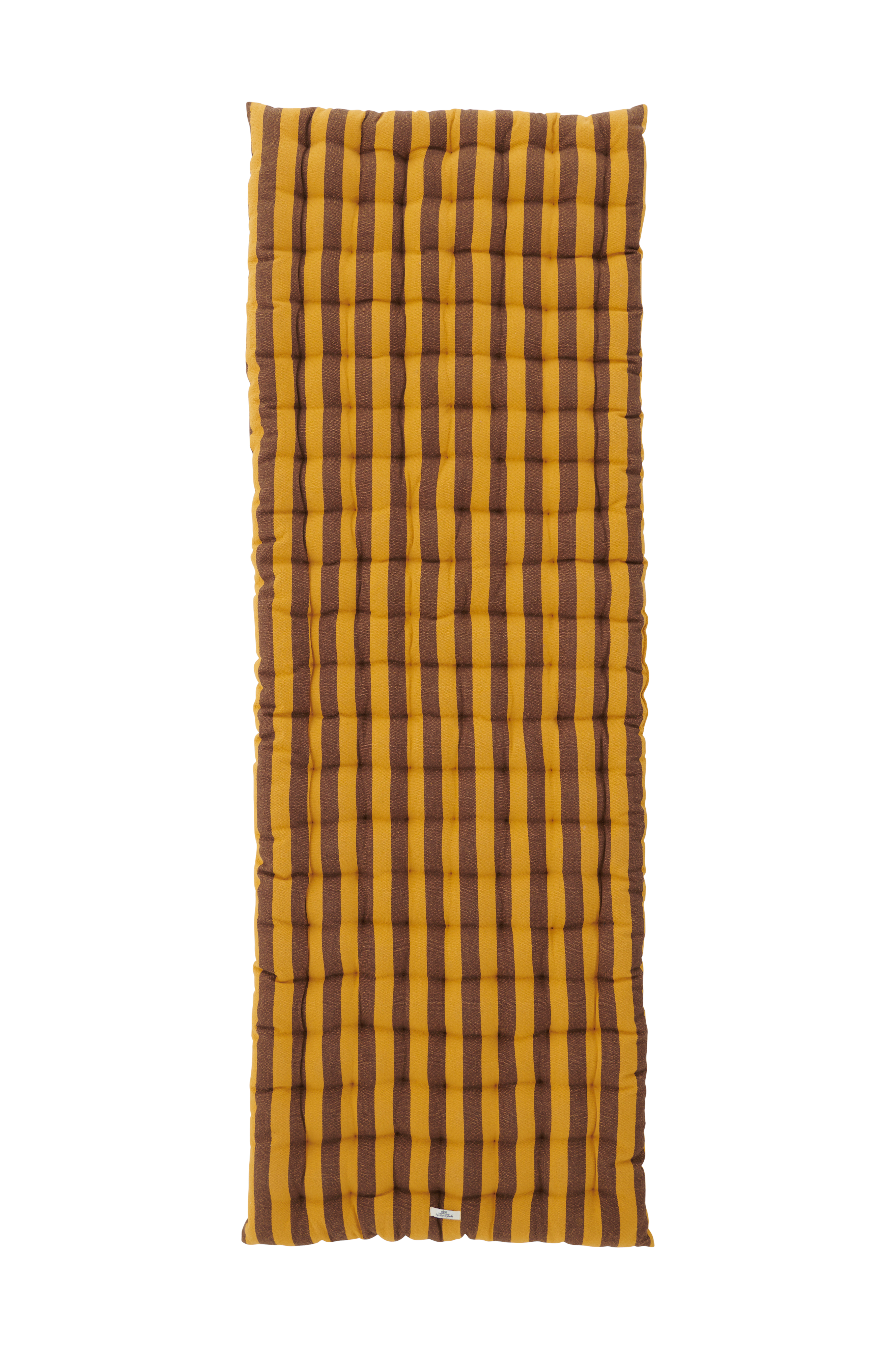 Madrass med ytterstoff av vasket bomull med grov tekstur. Garnfargede striper. Fyll av 100% polyester. Tykkelse 5 cm.