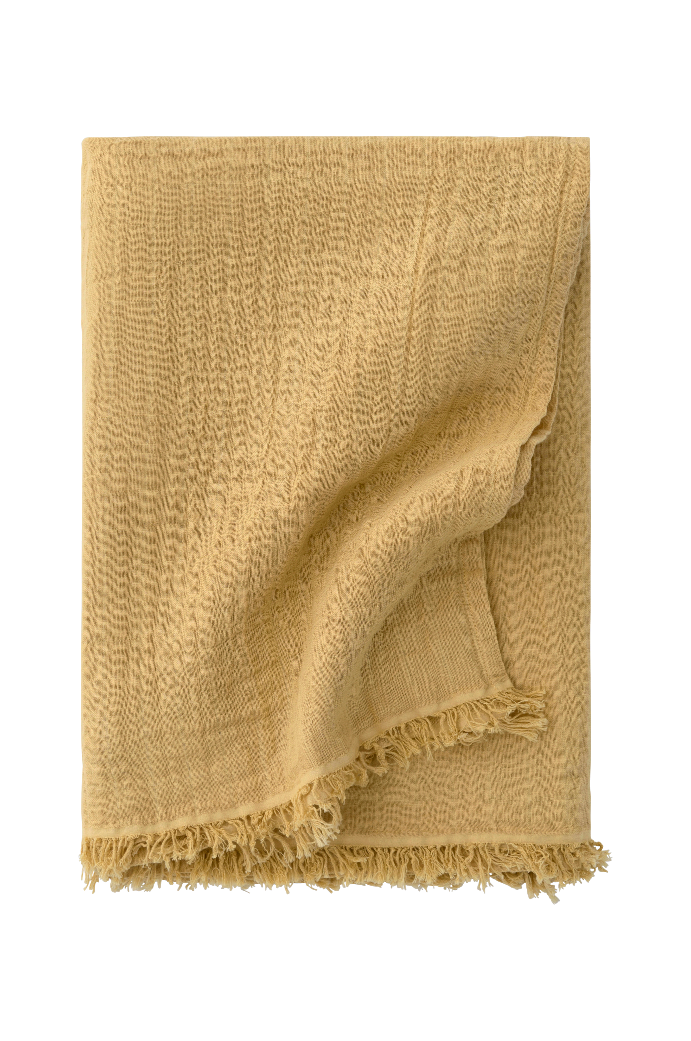 Pledd av vasket bomullsmusselin i 2 lag. Musselin er et supermykt, luftig stoff med diskre stripetekstur. Korte frynser i kortsidene.