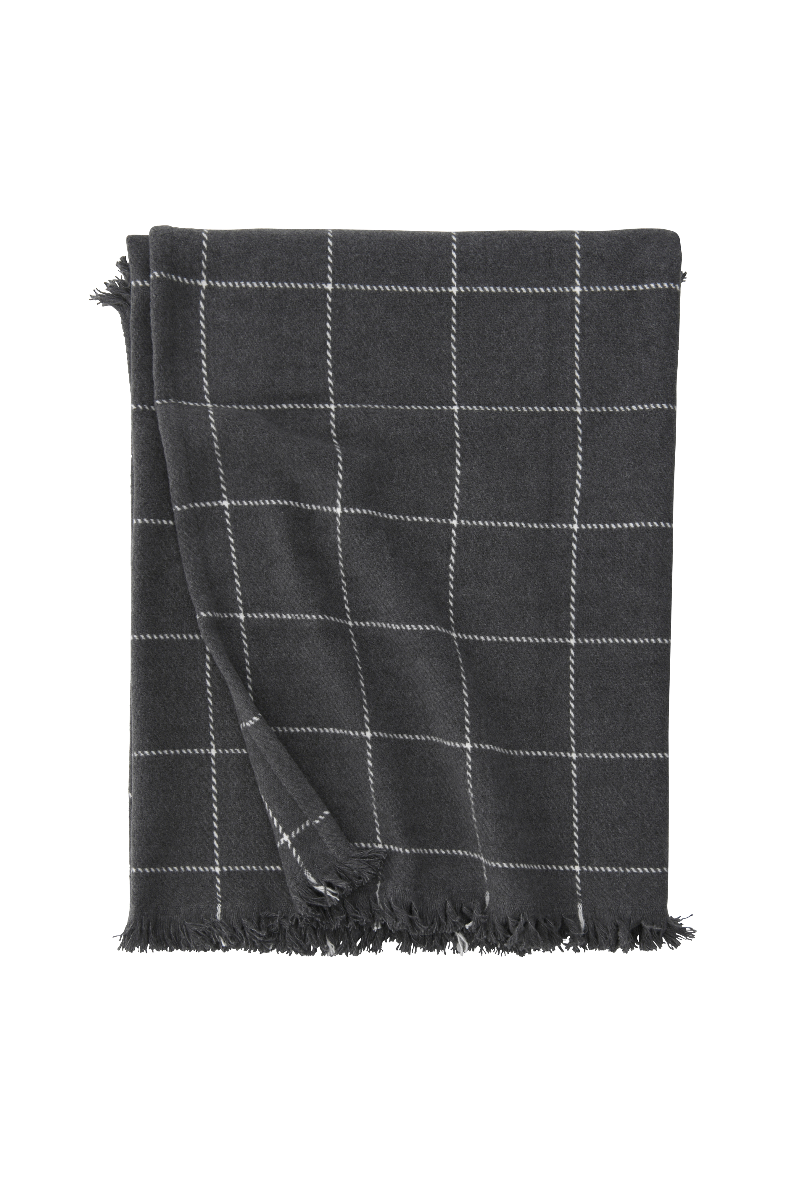 Pledd i myk, vasket kvalitet med garnfargede ruter. Korte frynser på to sider. Str. 130x170 cm + 3 cm frynser.