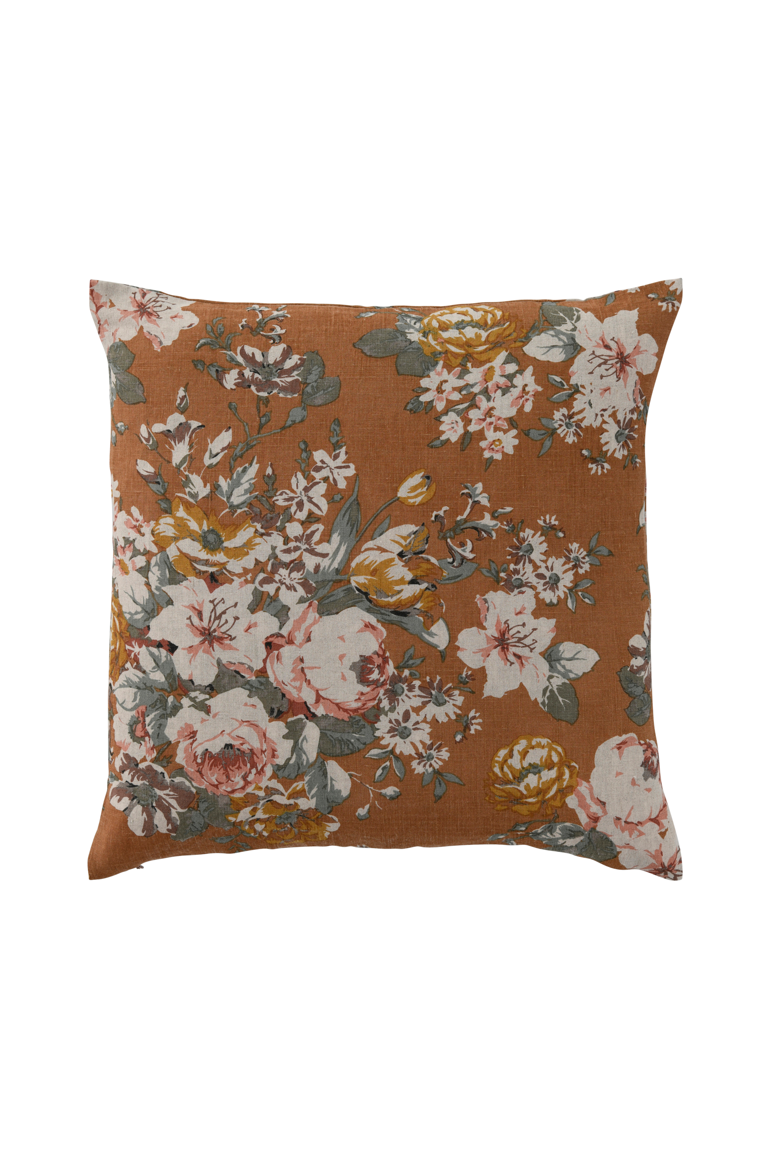 Putetrekk i myk vasket linkvalitet med trykt mønster. Av fransk lin. Glidelås.