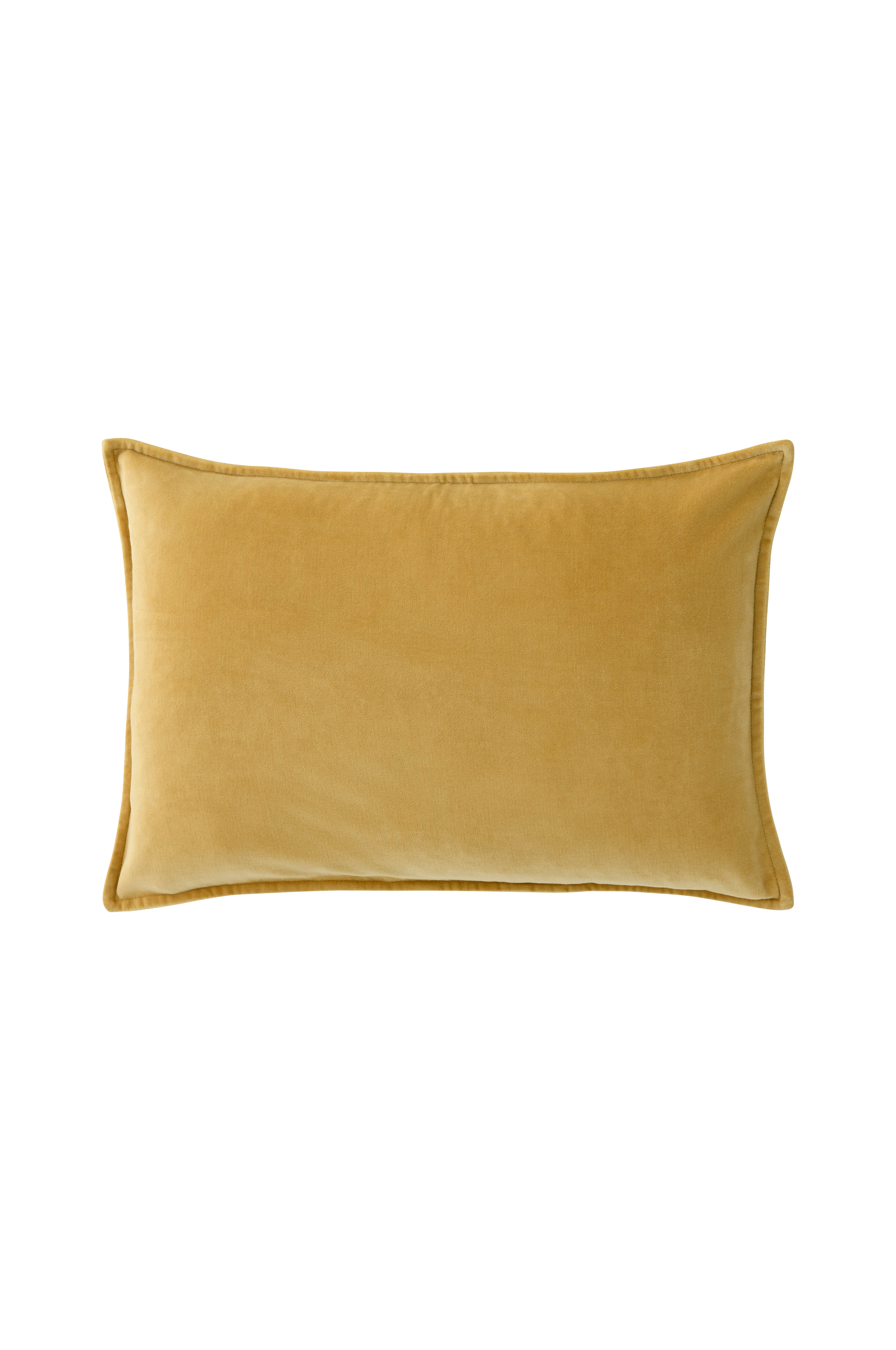 Putetrekk i fløyel av bomull med dekorsøm rundt. Glidelås i bunnen på baksiden. Str. 40x60 cm.