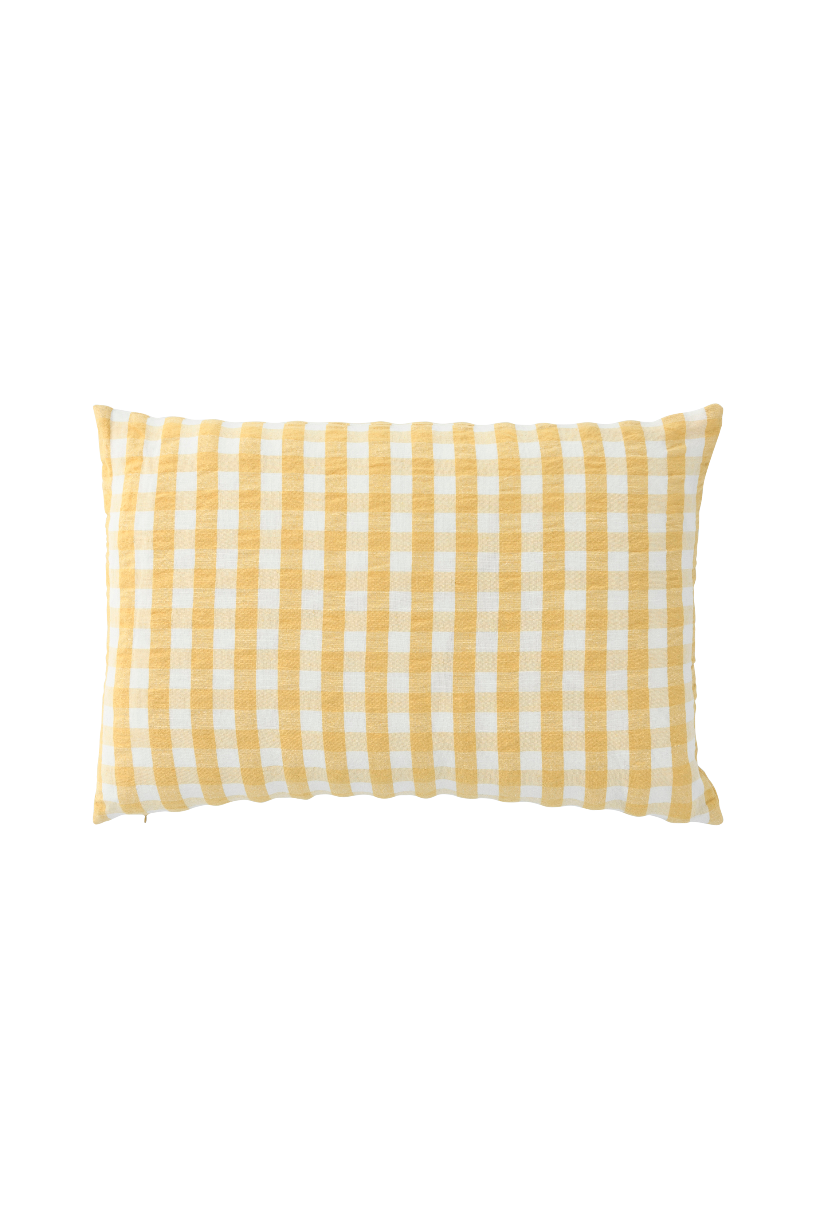 Putetrekk i krepp (seersucker) med lett tekstur i stoffet. Vasket kvalitet i en blanding av bomull og hamp med garnfargede ruter. Skjult glidelås i bunnen.