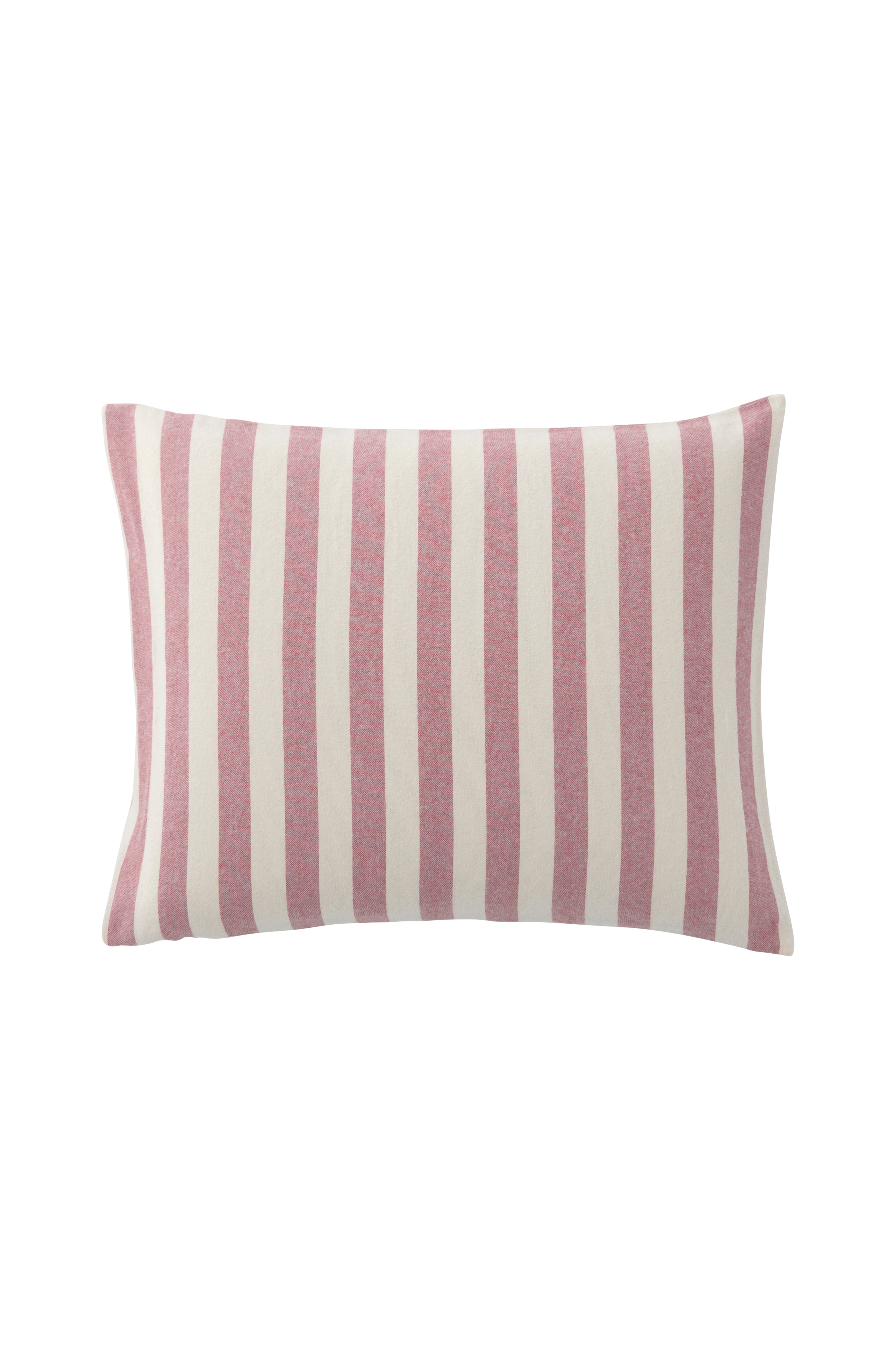 Putevar i flanell av økologisk bomull med garnfargede striper. Vasket kvalitet med myk, børstet overflate og doble jeanssømmer. Trådtetthet 110 TC. Str 50x60 cm.