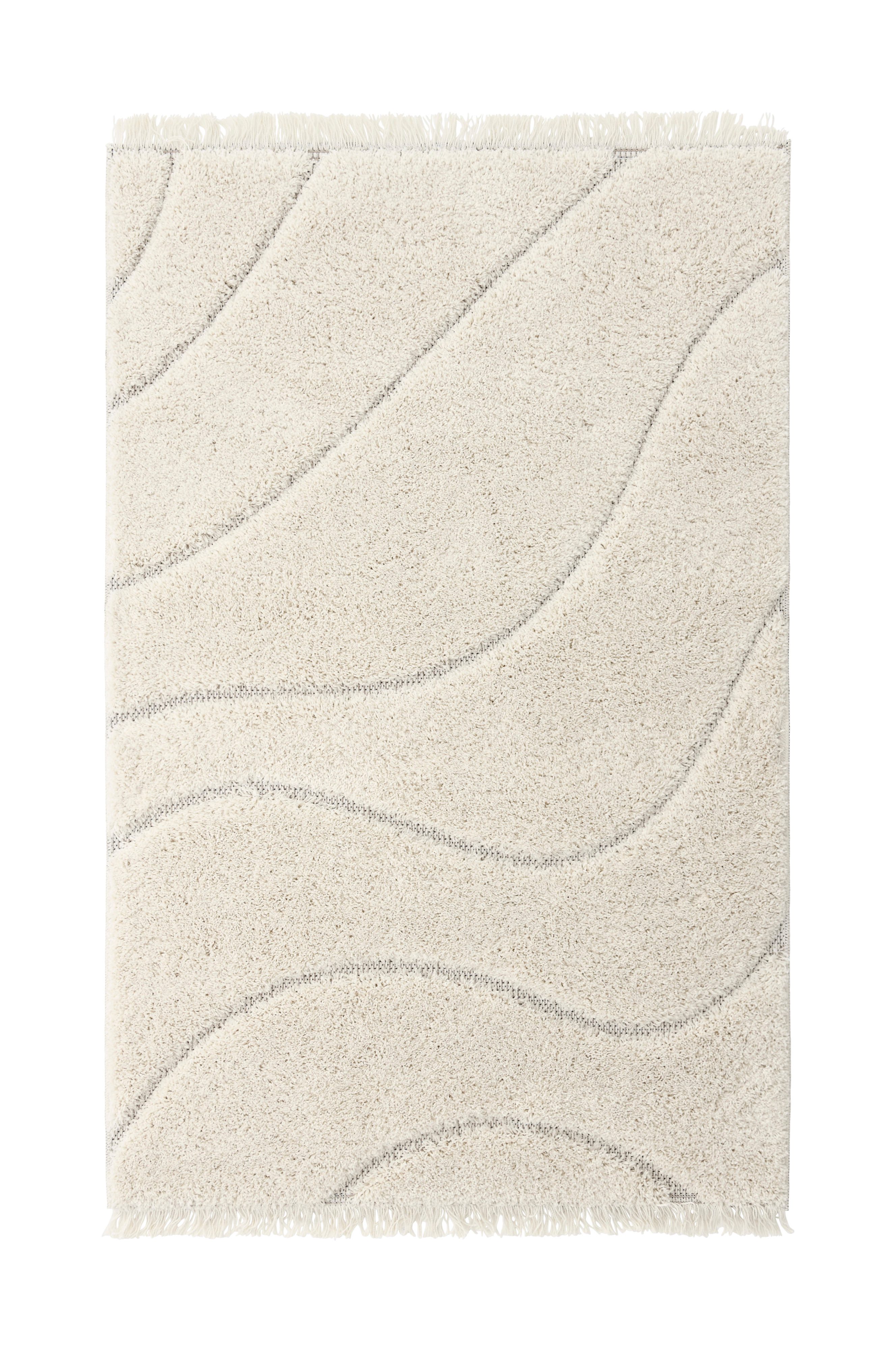 Tuftet ryeteppe med tett, tykk og myk lugg. Skåret mønster. Lugghøyde ca. 2,5 cm. Frynser på kortsidene, frynsenes lengde er 9 cm.