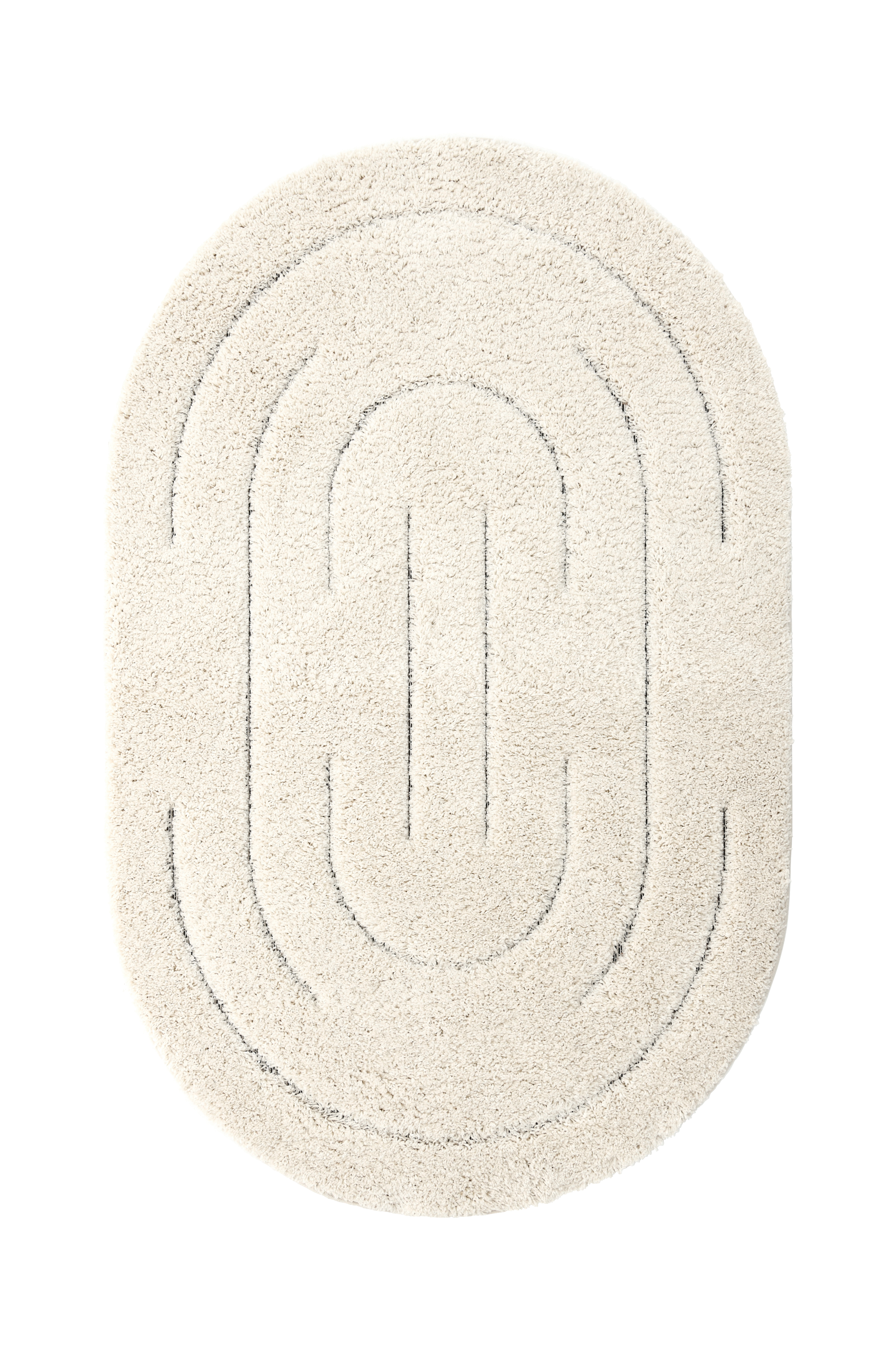 Tuftet ryeteppe med tett, tykk og myk lugg. Skåret relieffmønster. Lugghøyde ca. 2,5 cm.