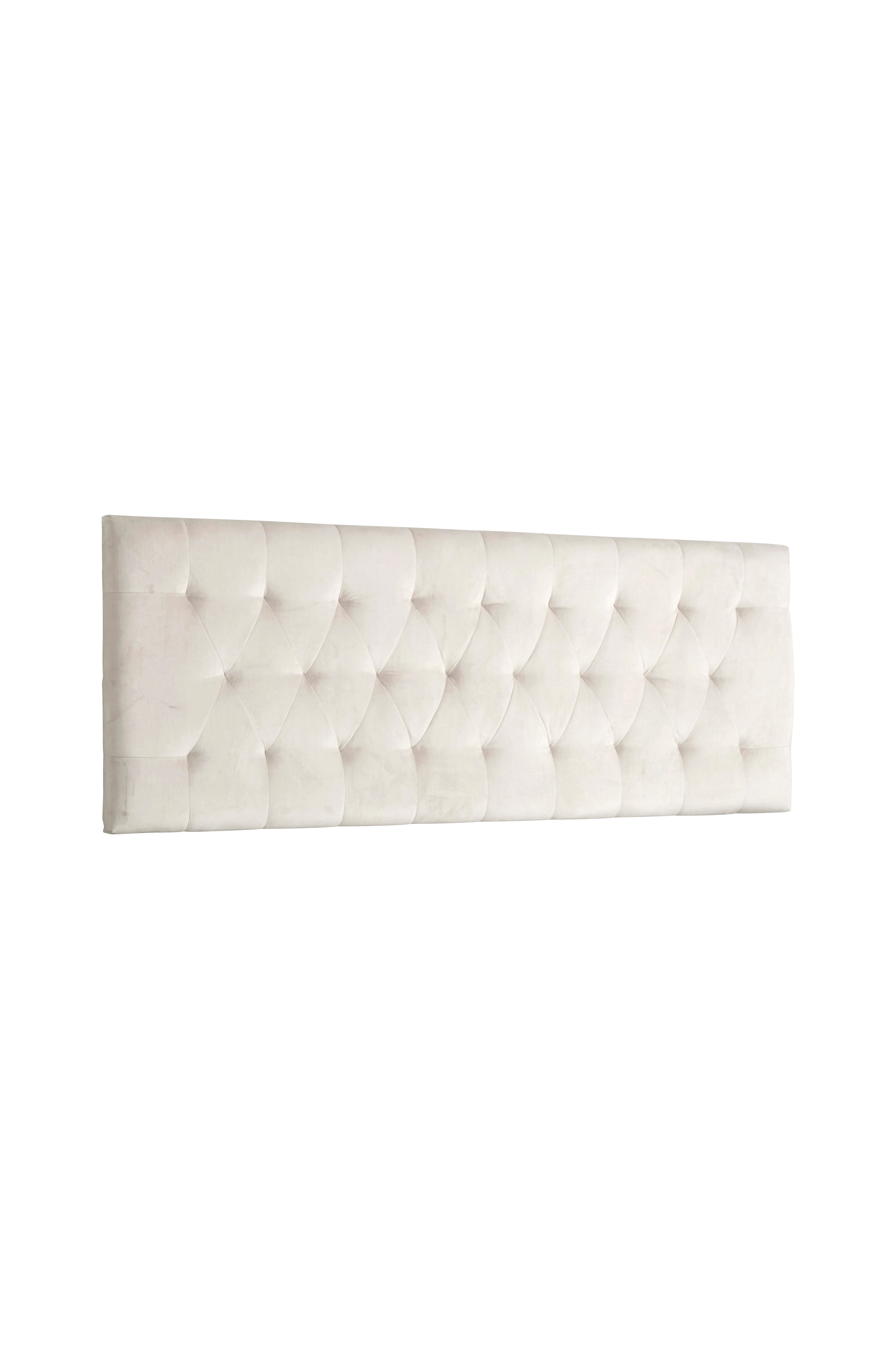 Stoppet sengegavl som festes på veggen (veggfester inngår). Stamme i tre. Trekk i fløyel av polyester og fyll av polyeter. Bredde 165 cm. Høyde 61.5 cm. Dybde 7,5 cm. Vekt 14 kg.