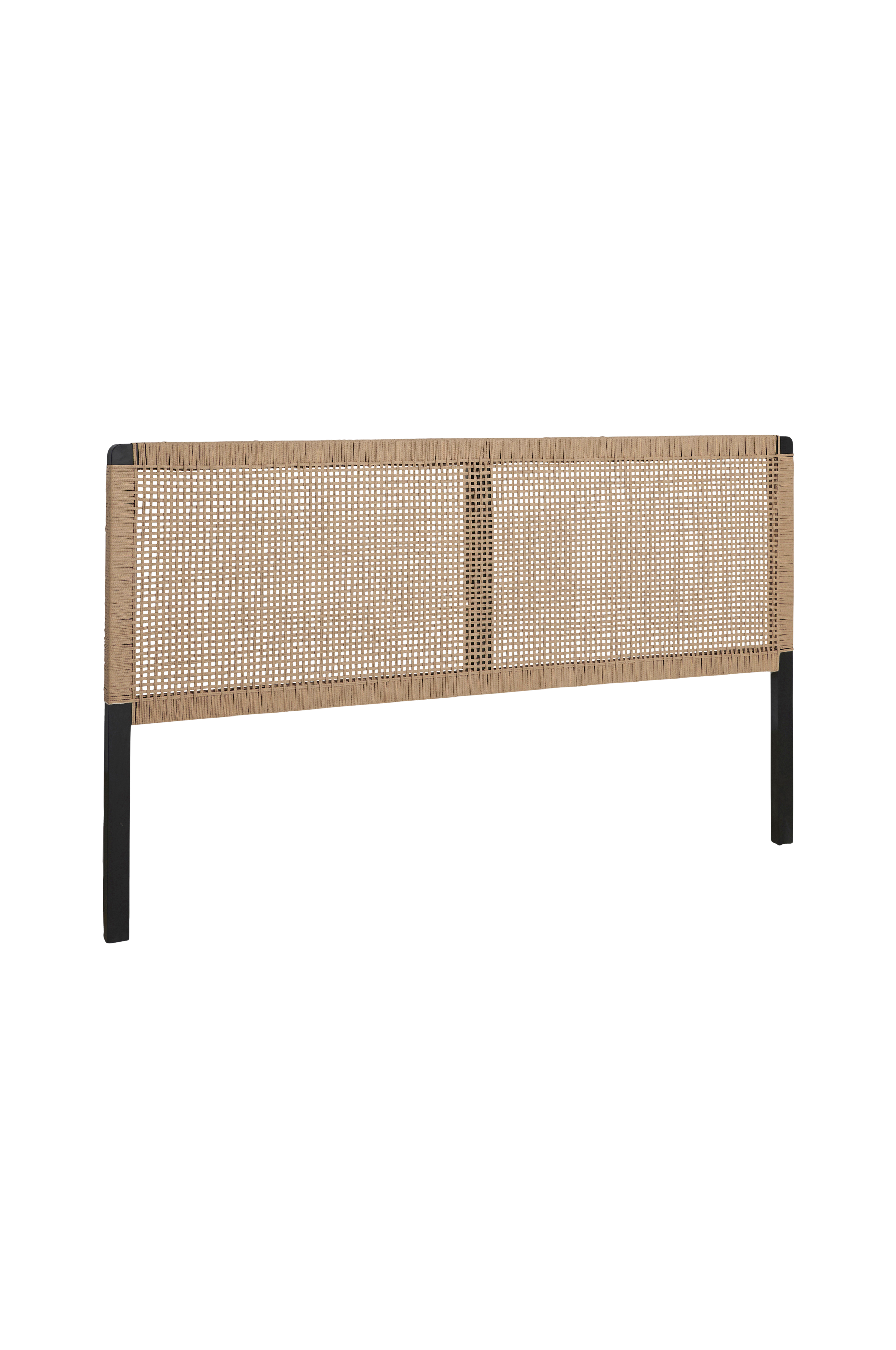 Sengegavl i alm med plate i ettsmårutet mønster av vokset papirtau. Gavlen står på gulvet. Montert. Bredde 180 cm, høyde 120 cm, dybde 4 cm.