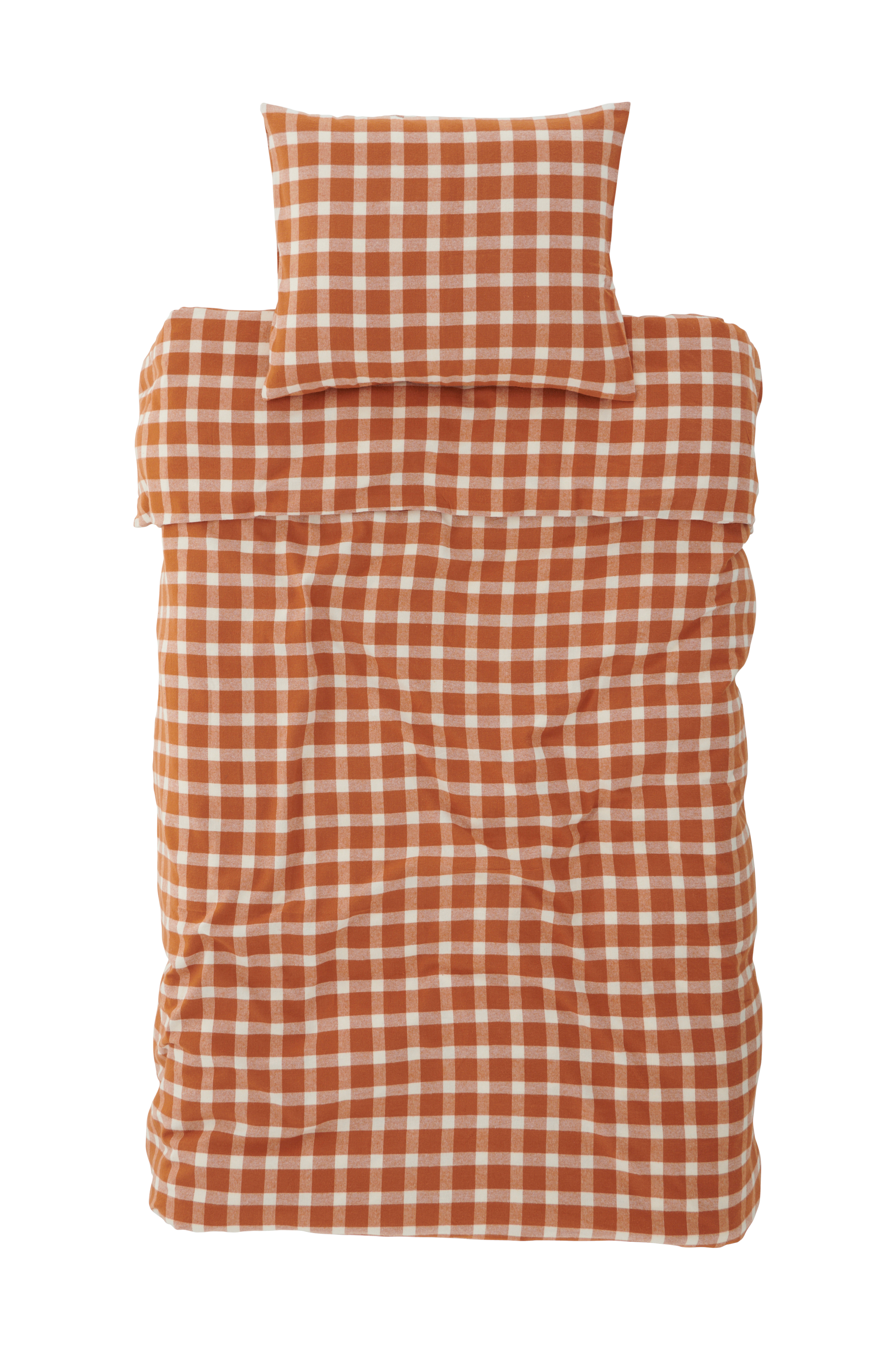 Dynetrekk i flanell av økologisk bomull med garnfargede ruter. Vasket kvalitet med myk, børstet overflate og doble jeanssømmer. Trådtetthet 110 TC. Dynetrekket har trykknapper i nederkanten. Ingen håndhull.