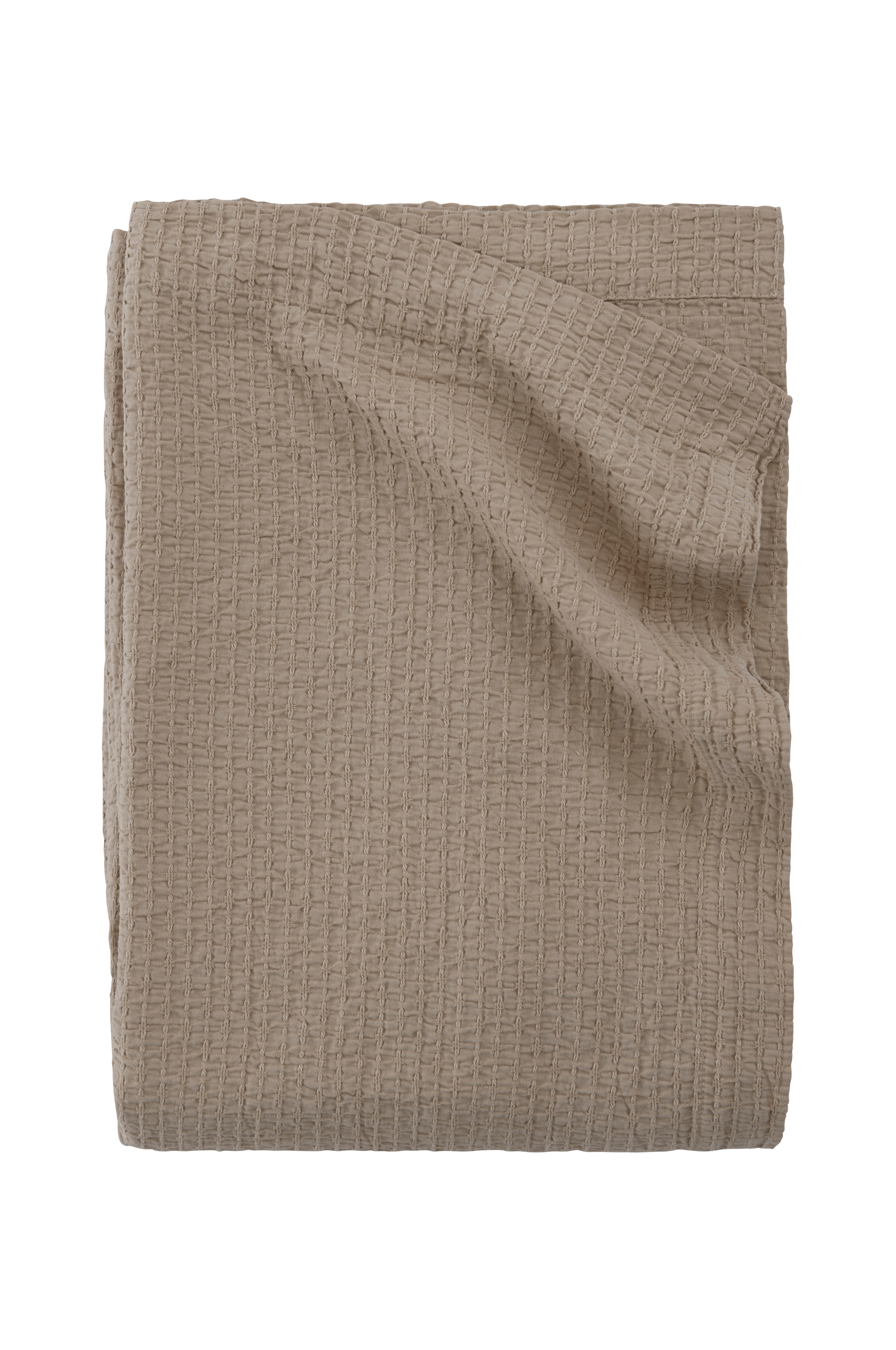 Jacquardvevd sengeteppe med tekstur og 5 cm dobbeltsøm rundt. Av vasket bomull.