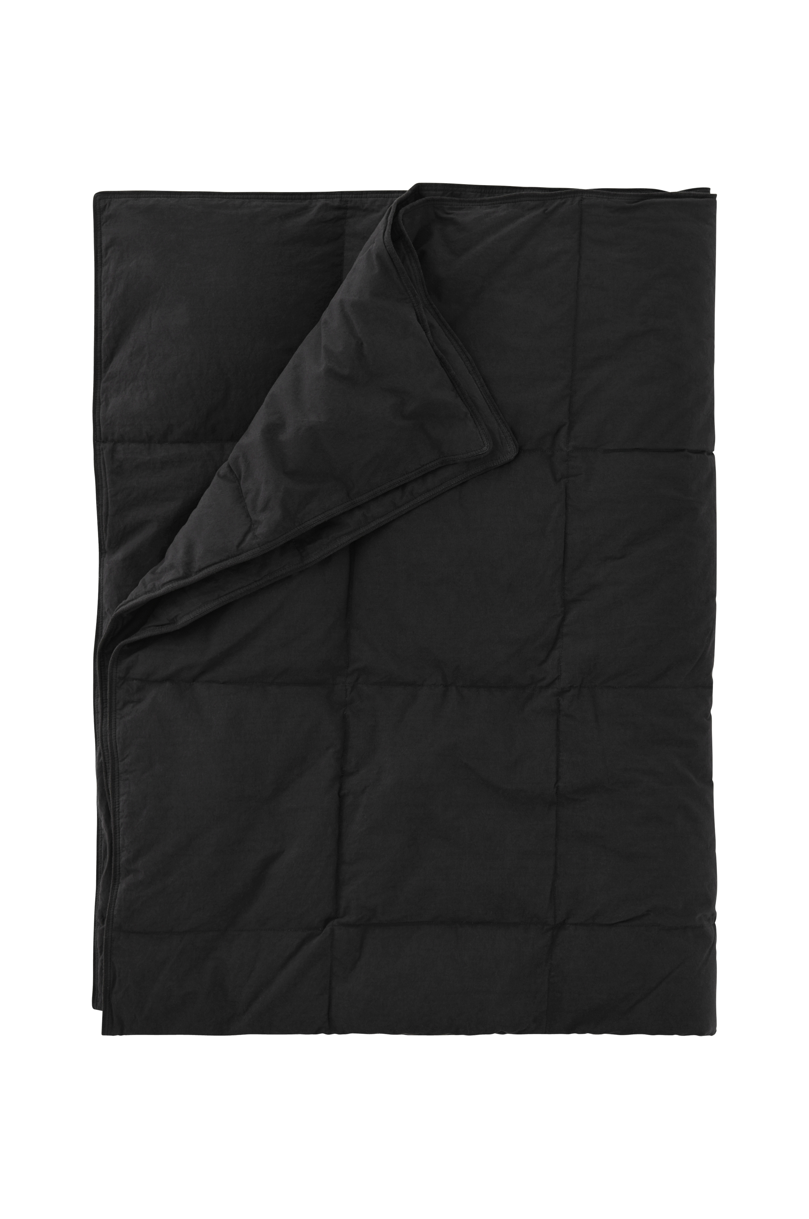 Rutequiltet sengeteppe som også kan brukes som pledd eller dyne. Stoff av bomullspercale og fyll av 70% gjenvunnet dun og 30% gjenvunnet fjær. Broderi ton-i-ton og passepoilkant rundt. Trådtetthet 233 tc. Leveres pakket i en eksklusiv stoffveske med broderi.