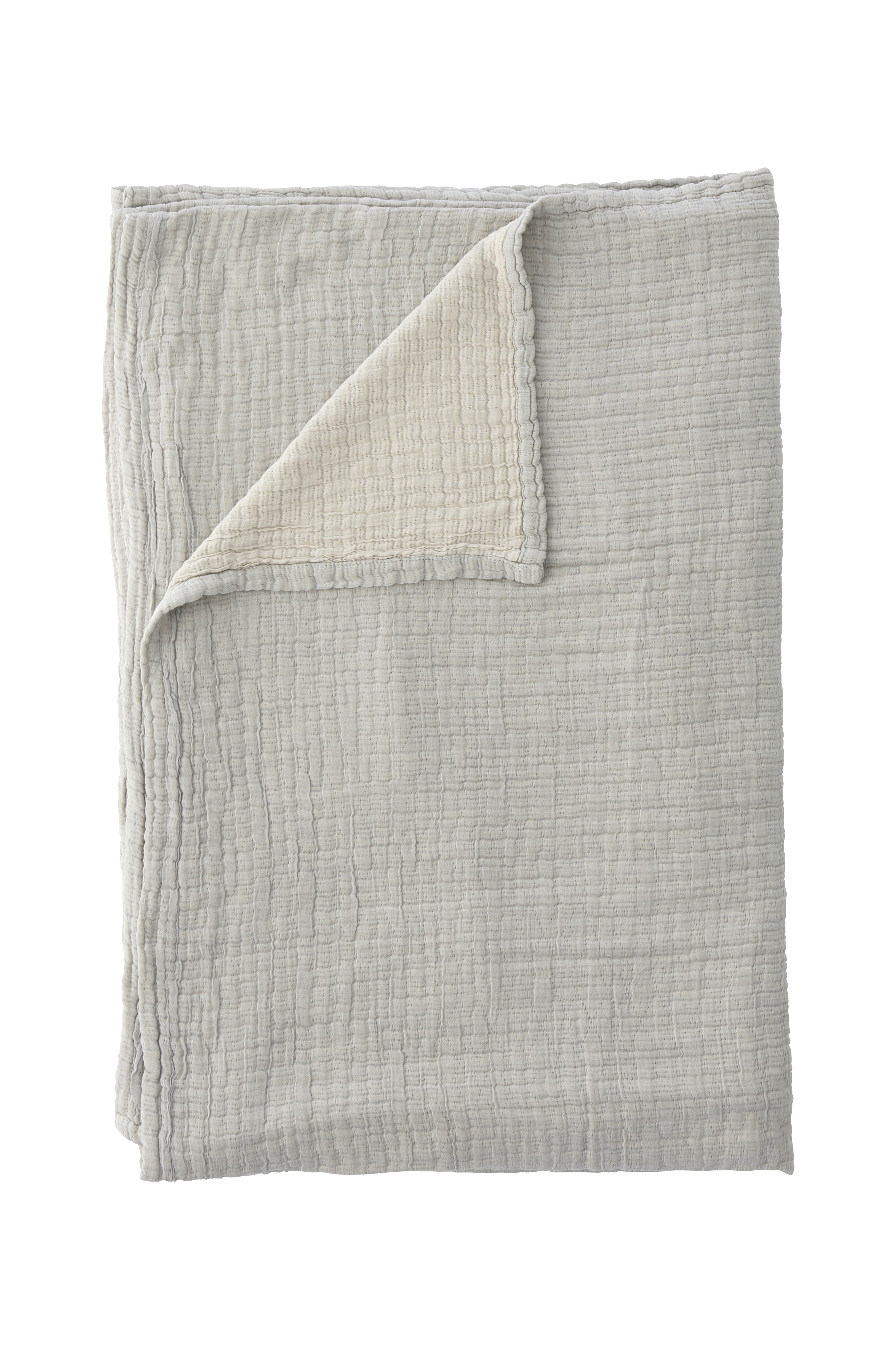 Dobbeltsidig/vendbart sengeteppe av jacquardvevd og vasket bomull. Myk og smidig kvalitet, for deg som vil ha et litt lettere sengeteppe med avslappet oppredning. 2 cm søm rundt.