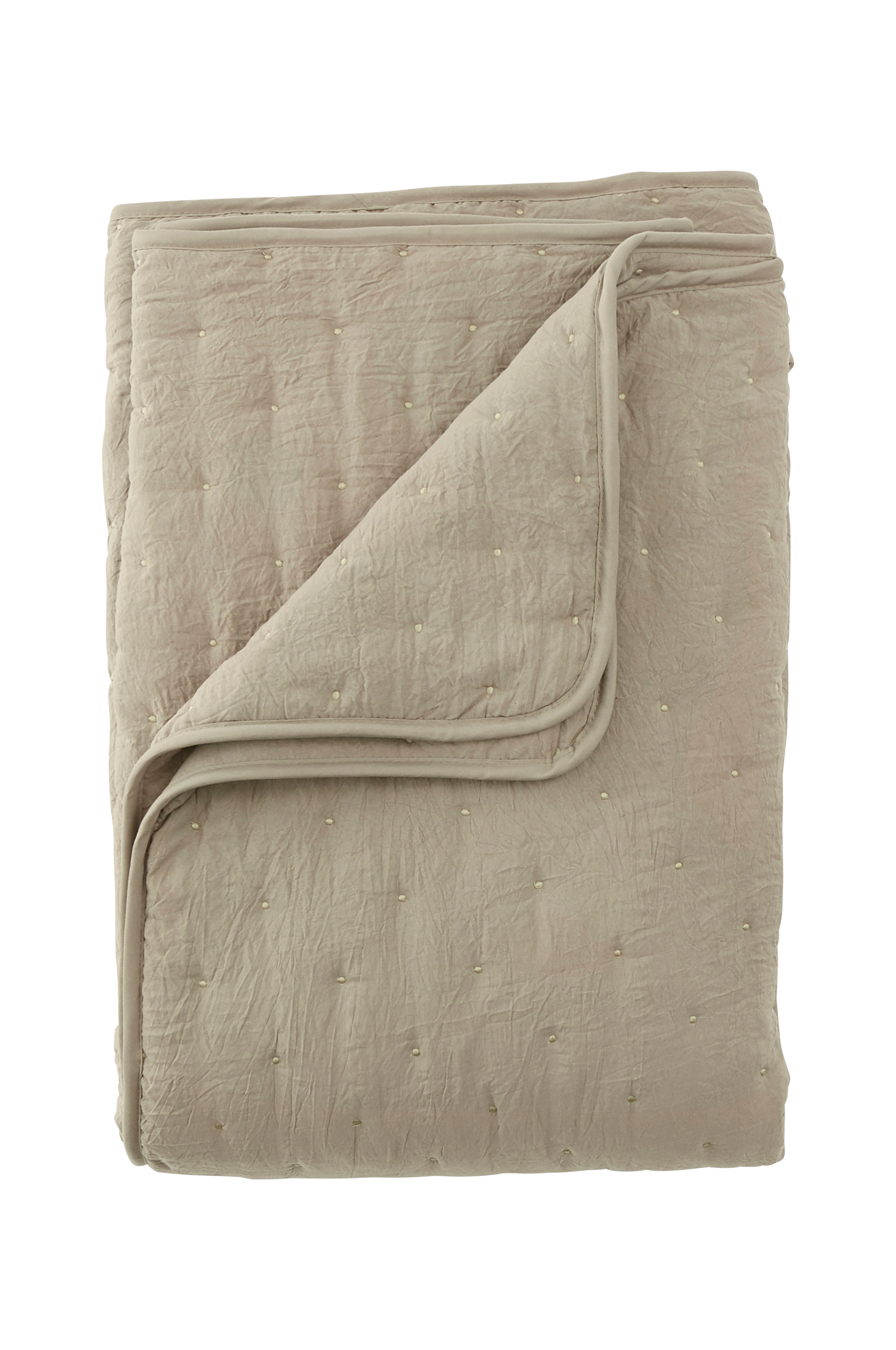 Quiltet sengeteppe i vasket kvalitet med myk, matt overflate og broderte prikker på begge sider.