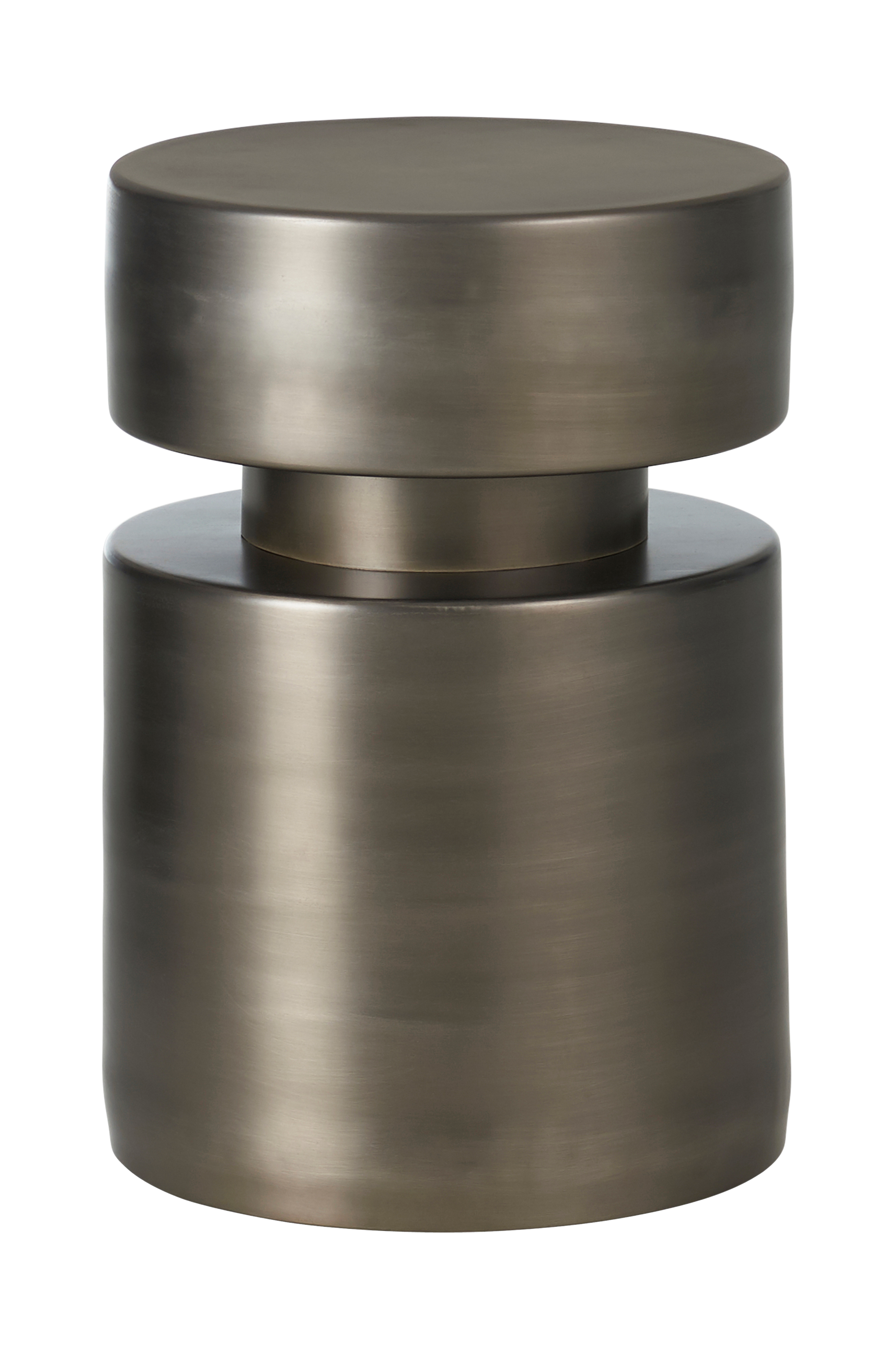 Formstøpt sidebord eller krakk av metall med antikkfinish. Høyde 48 cm, diameter 32 cm. Maks. vektbelastning 100 kg. Knotter på undersiden.