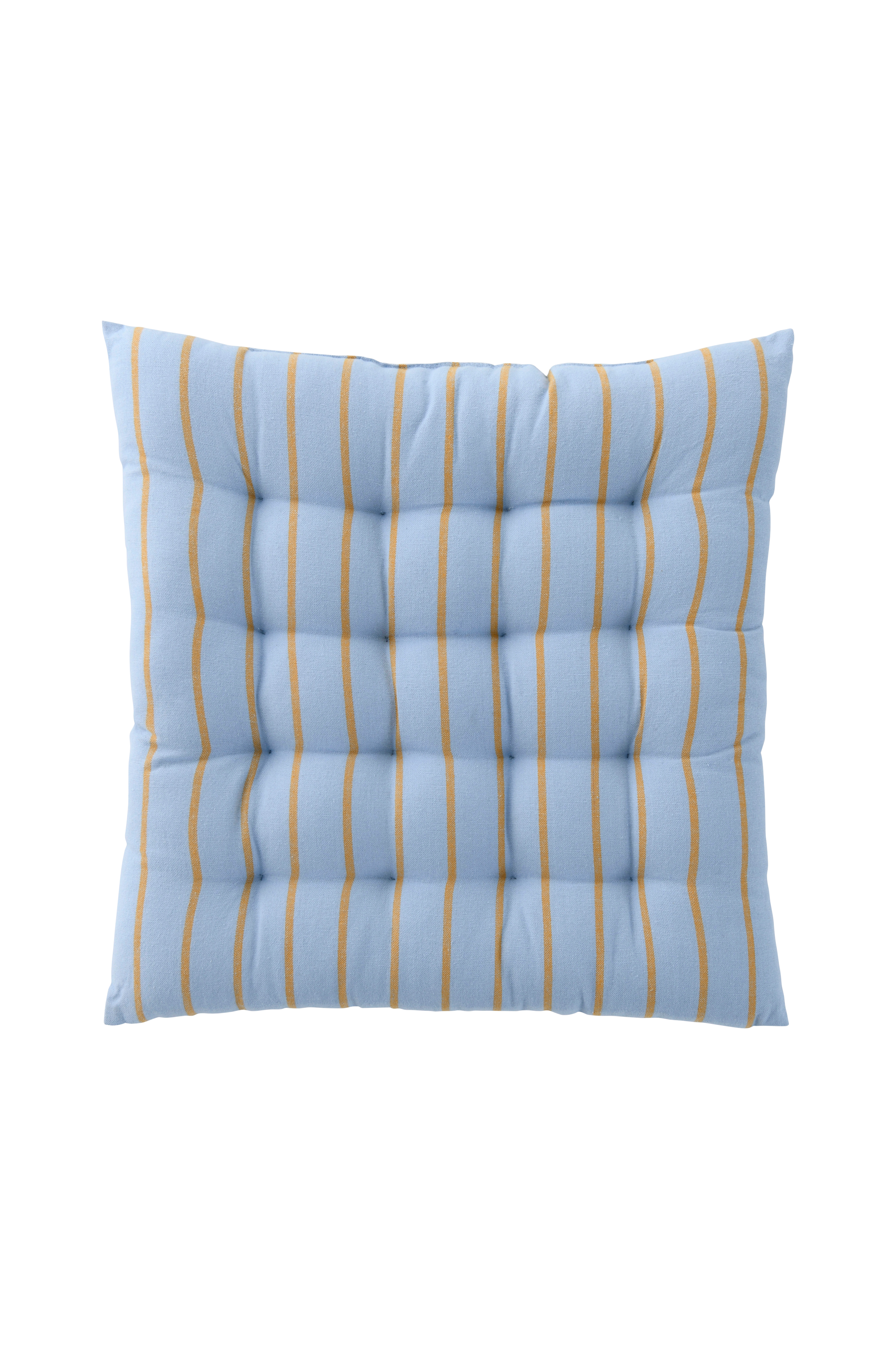 Sittepute som er perfekt til både kjøkkenstol og utemøbel. Stoff av bomull med dekorativt plasserte sting. Garnfarget. Fyll av polyester. Høyde ca. 5 cm.