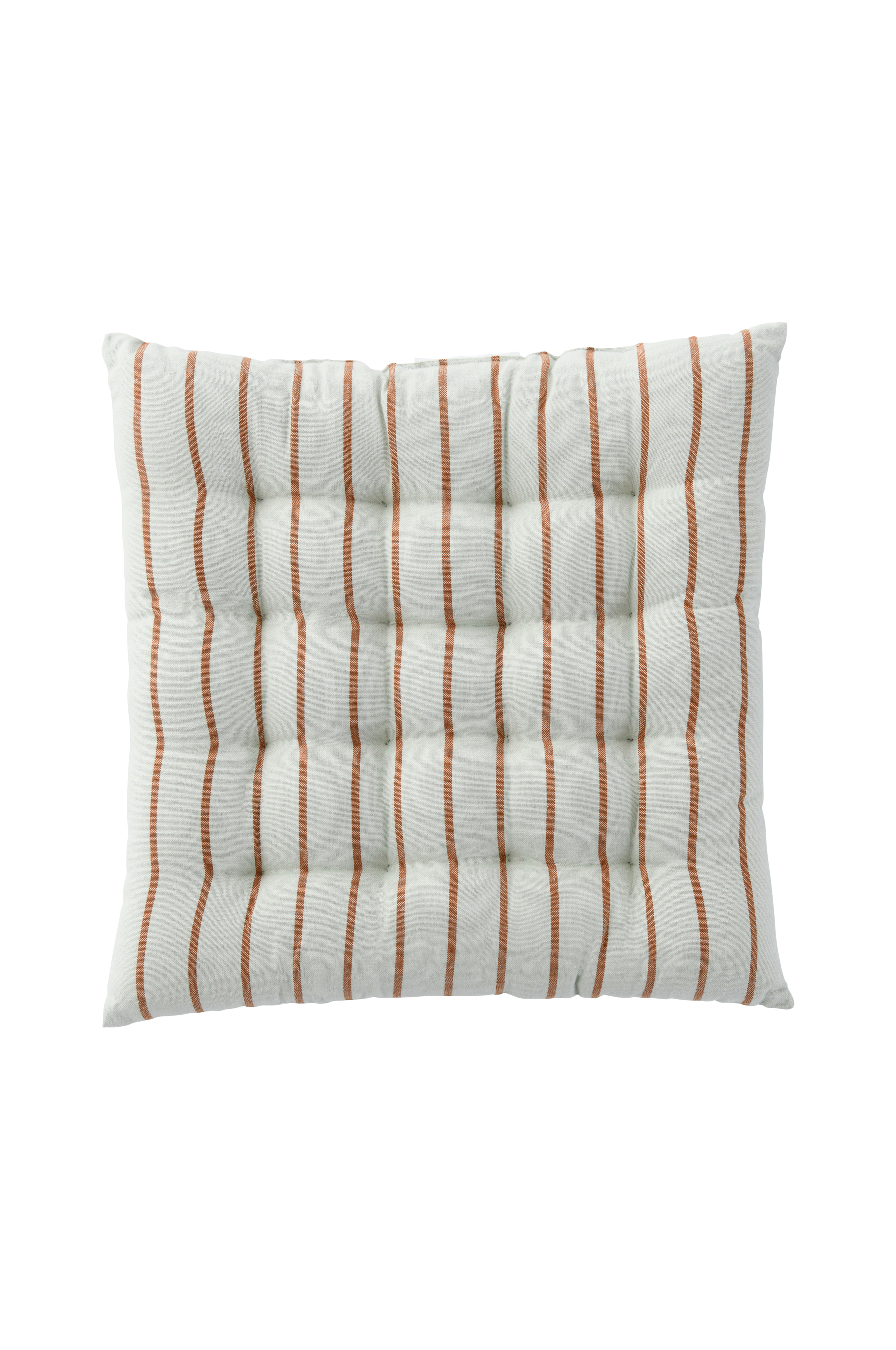 Sittepute som er perfekt til både kjøkkenstol og utemøbel. Stoff av bomull med dekorativt plasserte sting. Garnfarget. Fyll av polyester. Høyde ca. 5 cm.