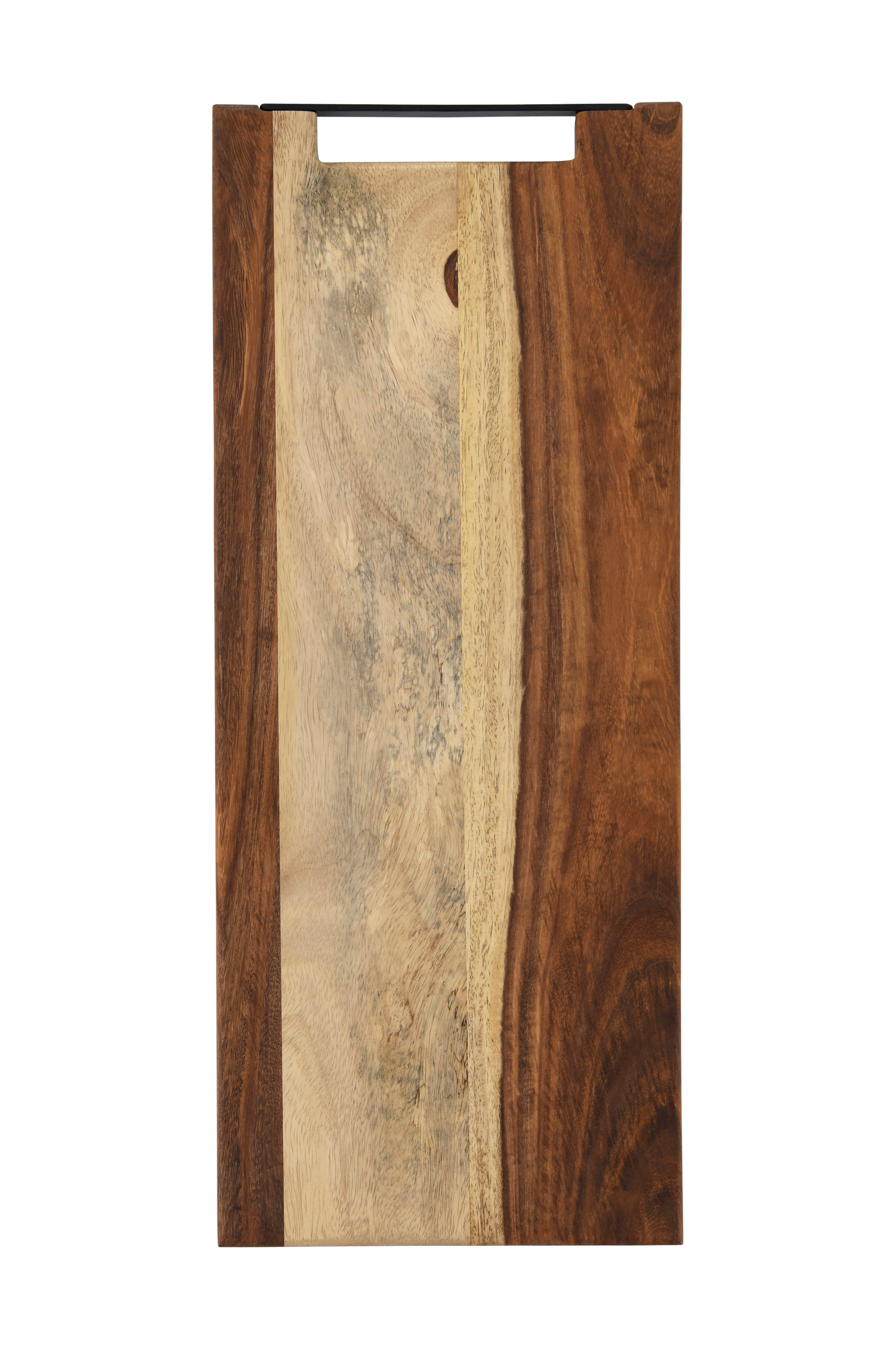 Skjærefjøl av sheeshamtre med håndtak av metall.