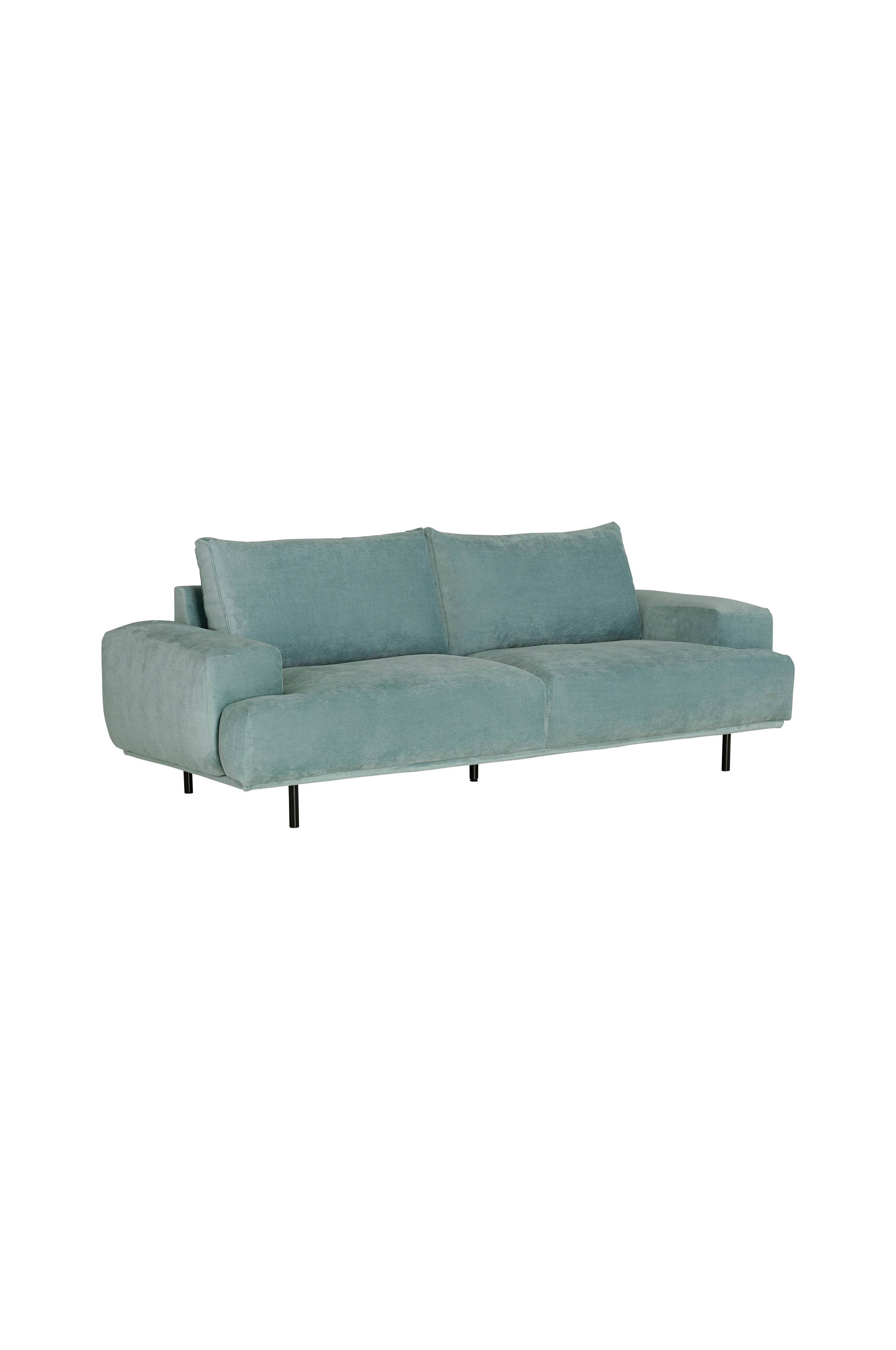 3-seter sofa med et moderne uttrykk. Trekk i myk chenille av polyester, martindale >25 000. Trekket på ryggputene er avtagbare. For øvrig fast trekk. Stamme av massivt tre og kryssfiner, fyll av PU-skum. Ben av svartmalt metall. Totale mål: Høyde 85 cm, bredde 236 cm, dybde 94 cm. Sittehøyde 44,5 cm, sittedybde 56 cm, sittebredde 174 cm. Høyde armlene 60 cm. Høyde på bena 14 cm. Leveres montert, kun bena skrus på ved levering.