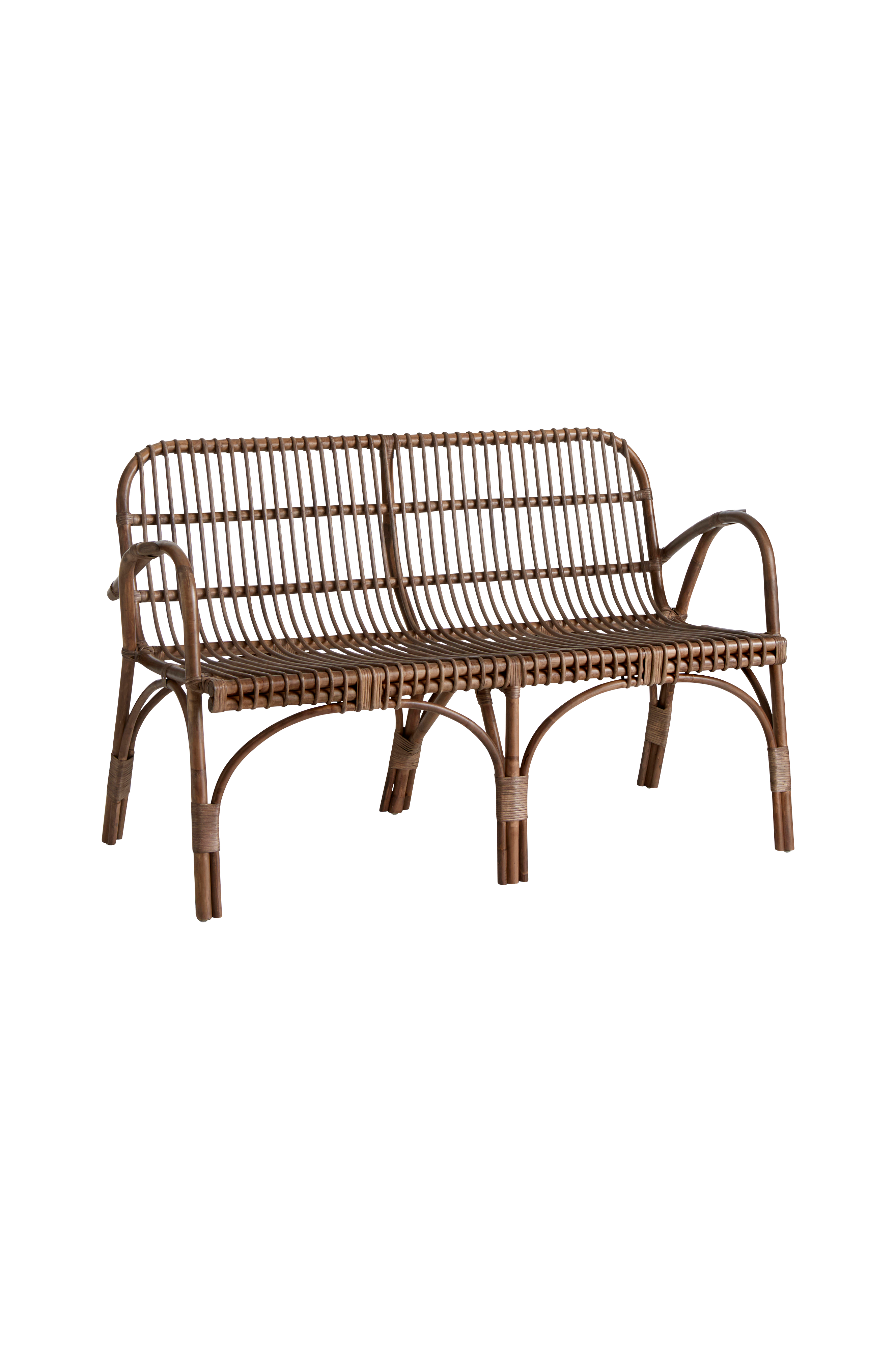 Sofa av rotting. Bredde 136, høyde 86, dybde 68 cm. Sittehøyde 47 cm, sittedybde 45 cm. Leveres montert. Vekt 11,5 kg.