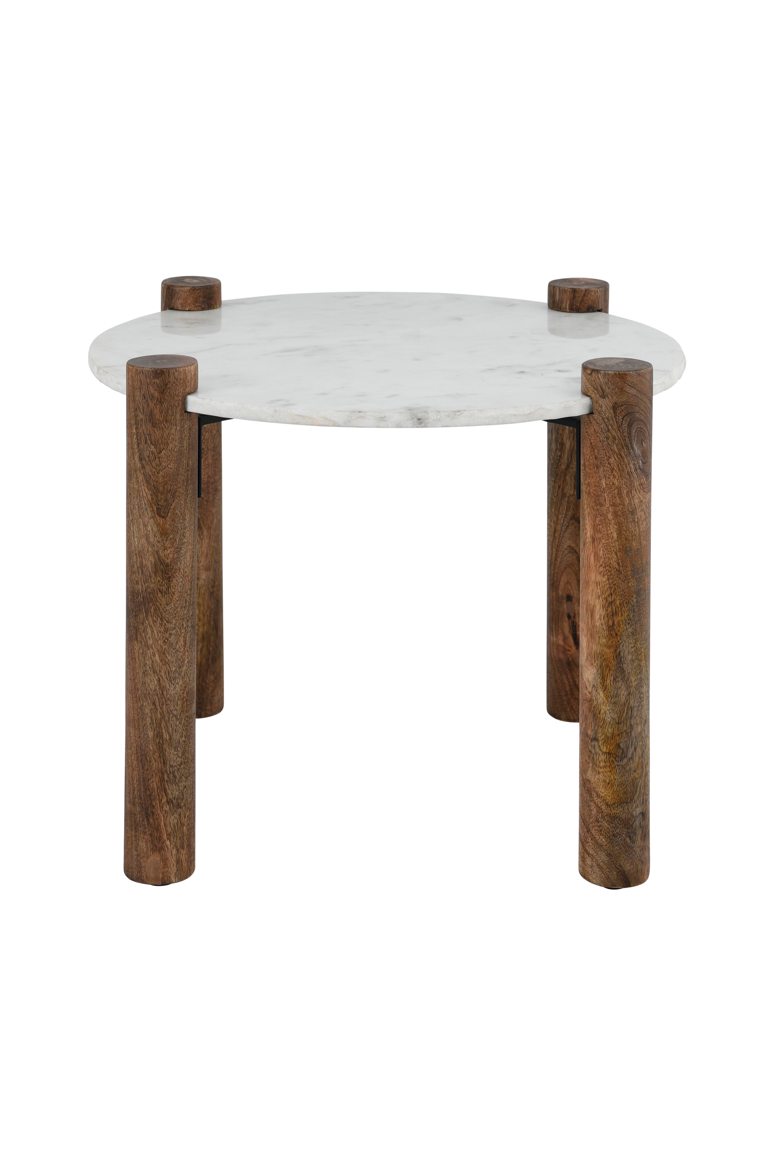 Sofabord med bordplate i polert marmor med rå tekstur på siden. Marmorplatens tykkelse 15 mm. Ben i massivt mangotre med vokset overflate. Maks vekt 20 kg.