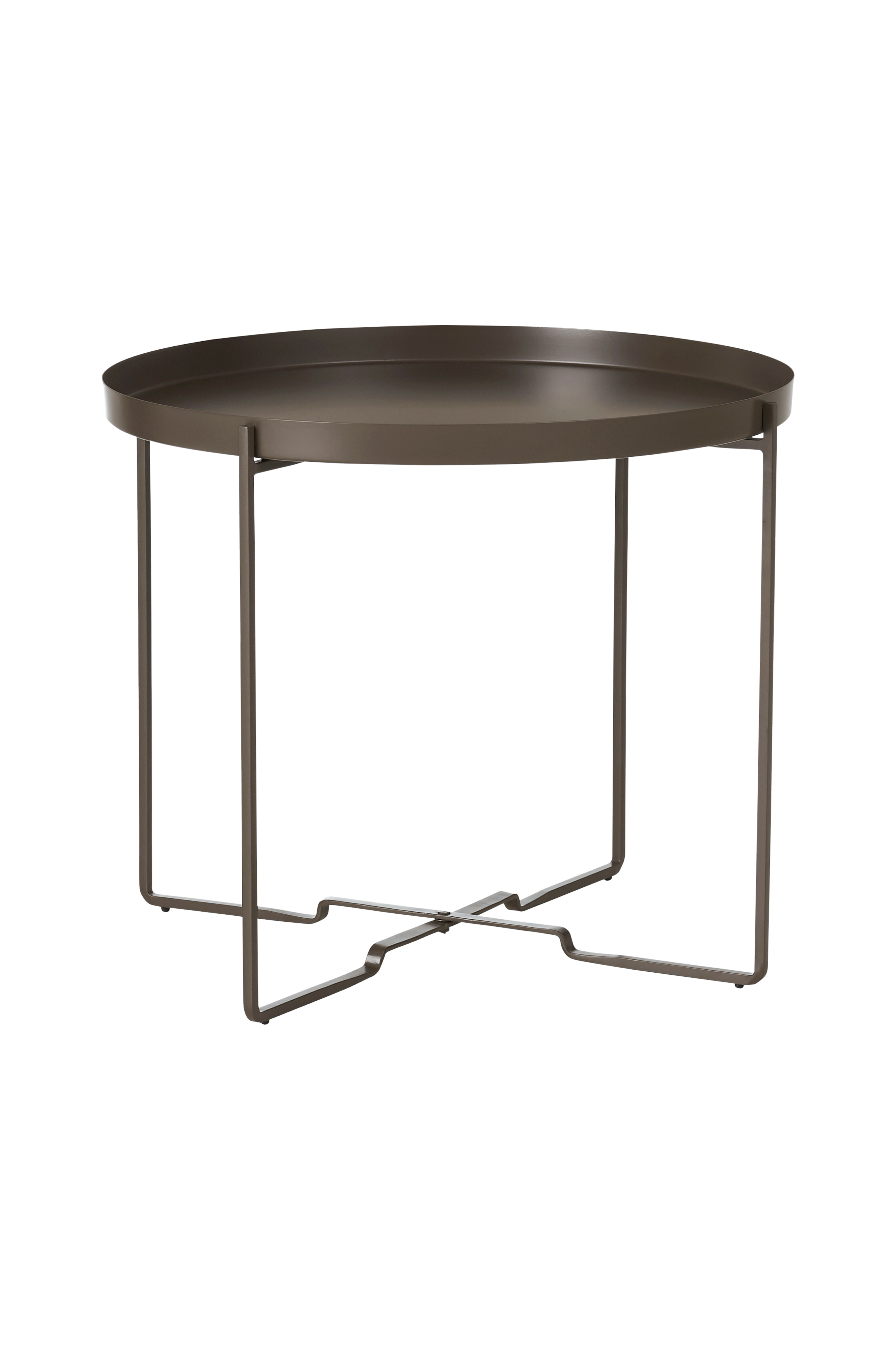 Sofabord med avtagbart brett. Sammenleggbart stativ. Av metall. Ø 57 cm. H 48 cm.